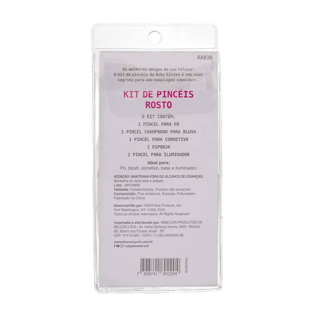 O Kit de Pincéis rosto da Ruby Kisses é seu novo segredo para uma maquiagem impecável.