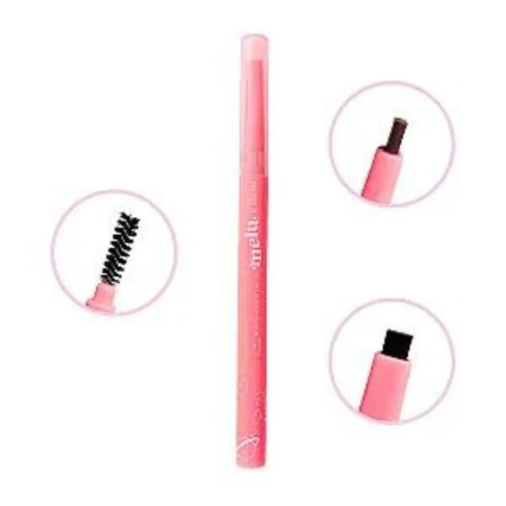 Lápis de sobrancelha Melu By Ruby Rose é 2x1 tem um lado a ponta chanfrada com uma alta pigmentação facilitando preencher sua sobrancelha, do outro lado possui um escovinha super macia para pentear e alinhar os pelos, é um lápis retrátil não precisa apontar é só girar, fácil de usar com uma embalagem linda!