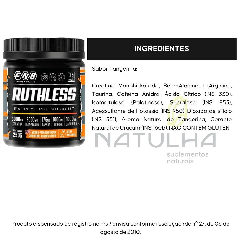Ruthless Pré Treino (Creatina + Cafeína + Beta Alanina + L-Arginina + Taurina) 250G - Fnb Sports Tangerina