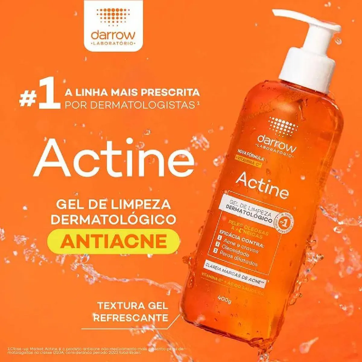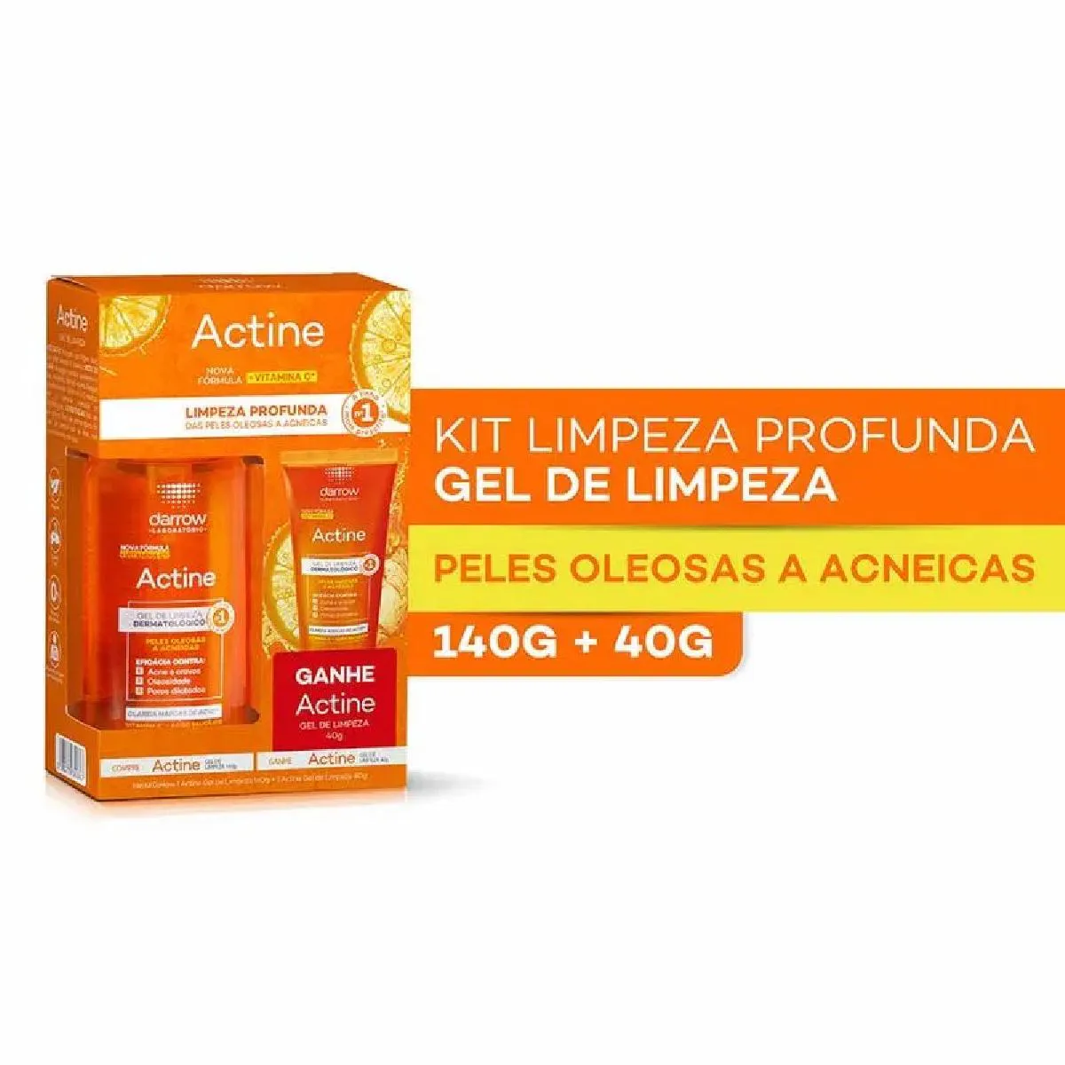 Sabonete Actine Kit Gel de Limpeza Facial vitamina c 140g+40g – Darrow Revitalize sua pele oleosa e acneica com o Gel de Limpeza Facial Darrow Actine! Sua fórmula inovadora, enriquecida com vitamina C e ativos dermatológicos como Ácido Salicílico, P-refinyl e Lactato de Mentila, proporciona uma limpeza profunda que reduz a oleosidade, combate acne e cravos, minimiza poros dilatados e clareia as marcas de acne. Sinta a sensação de frescor e purificação a cada uso enquanto sua pele é cuidada e renovada. Não deixe a oleosidade e acne atrapalharem sua confiança. Experimente o Gel de Limpeza Facial Darrow Actine e conquiste uma pele limpa, saudável e radiante todos os dias.