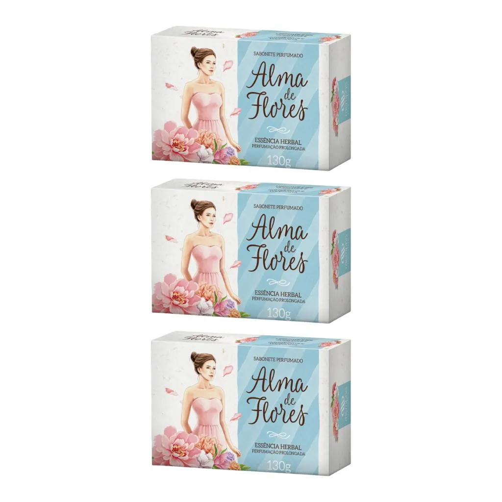 Sabonete Alma de Flores 130g Essencia Herbal - Kit C/3un