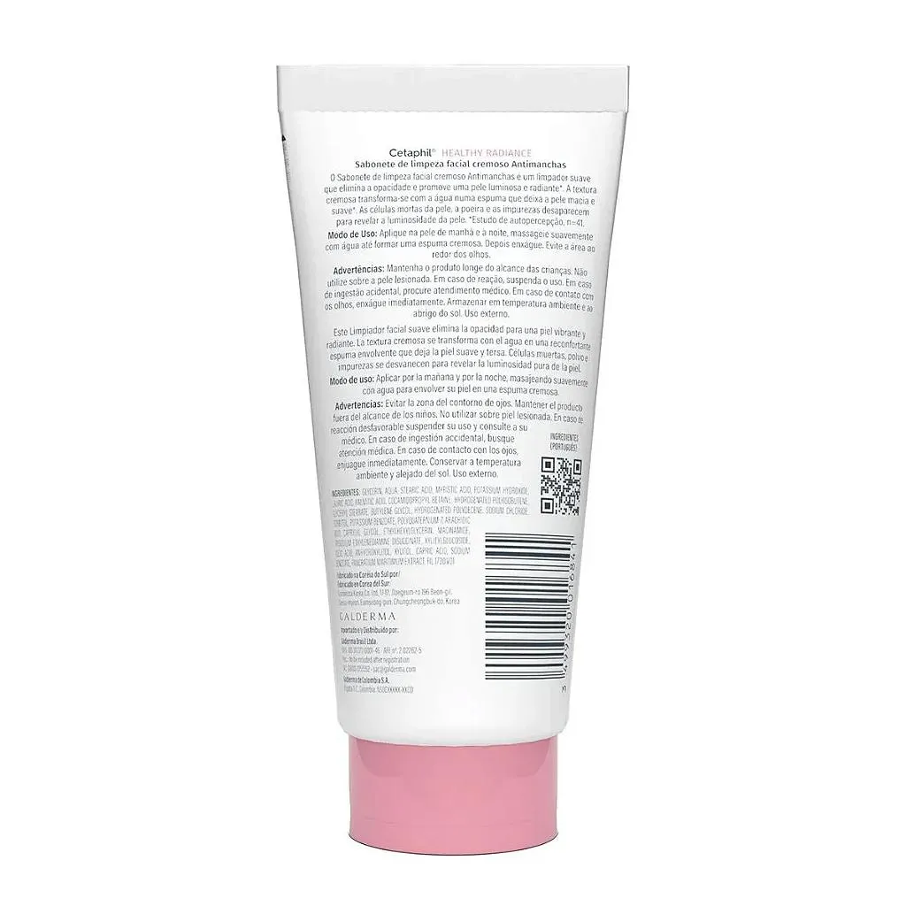 O Cetaphil Sabonete de Limpeza Facial Cremoso Antimanchas é um limpador suave desenvolvido para promover uma pele mais luminosa, uniforme e radiante. Com textura cremosa que, ao entrar em contato com a água, se transforma em uma espuma rica e delicada, o produto remove impurezas e resíduos sem agredir a barreira cutânea, deixando a pele macia, hidratada e visivelmente saudável.Para que serve?