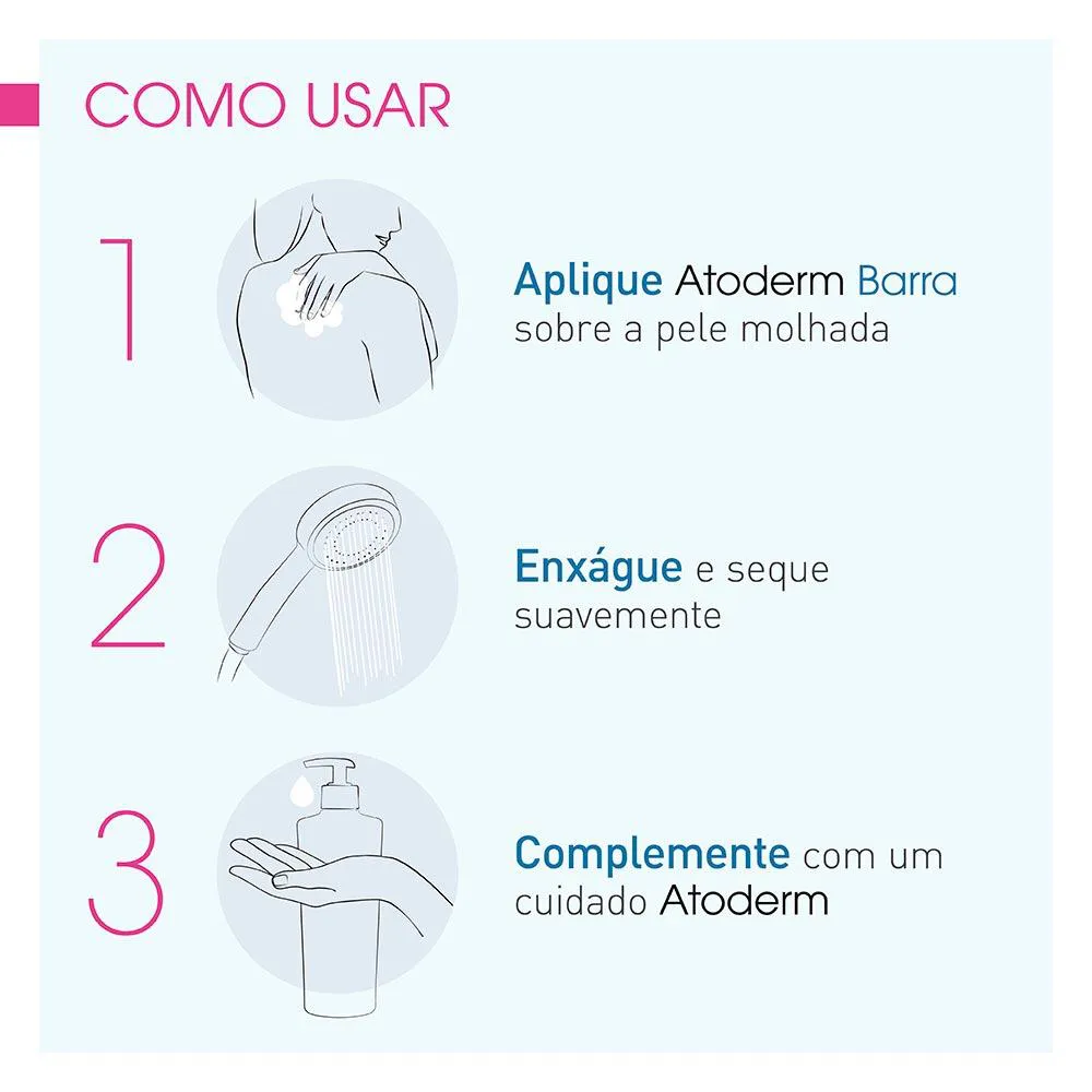 1. Aplique Atoderm Barra na pele molhada até espumar.
