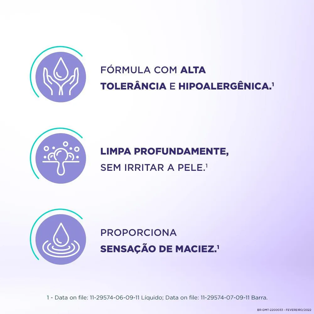 Sua formulação suave, com o exclusivo Soft Complex, forma um filme protetor que higieniza evitando o ressecamento, deixando a pele mais macia e hidratada.
