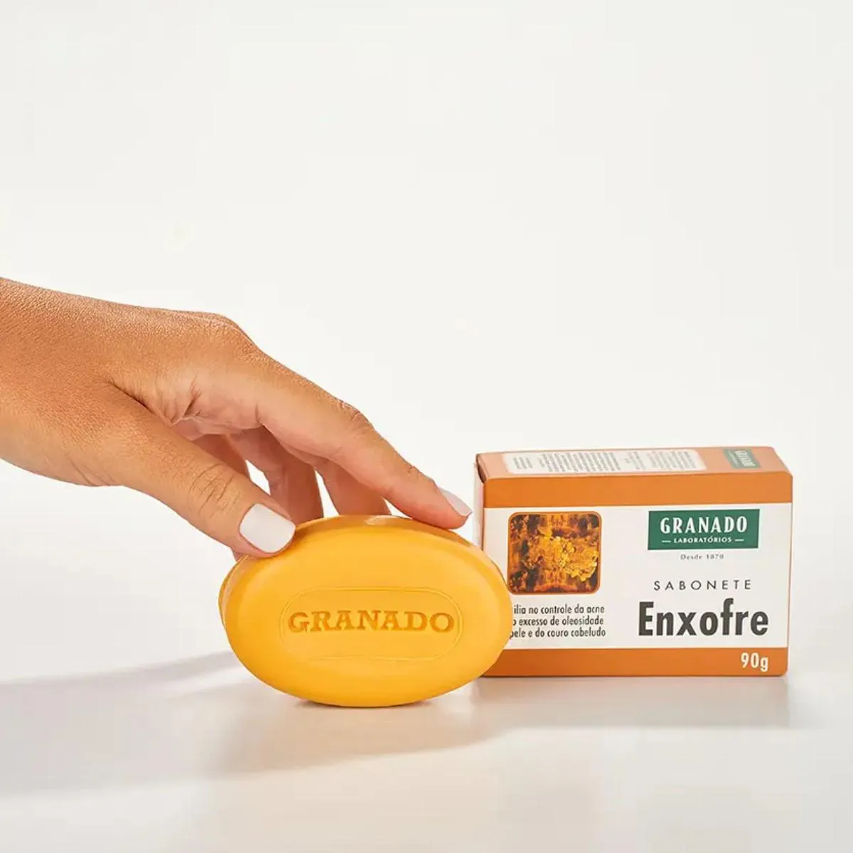 Granado Enxofre é um sabonete em barra, ideal para a limpeza do rosto que sofre com acne. Também é indicado para reduzir o excesso de oleosidade do couro cabeludo. Contém 7% de enxofre, e é livre de parabenos e ingredientes de origem animal. O enxofre é um mineral com propriedades anti-inflamatórias, adstringentes e anti-bacterianas. sabonetes à base de enxofre são muito indicados para auxiliar no tratamento da pele acneica, pois diminuem a oleosidade e aliviam inflamações. Como usar - Aplicar Granado Enxofre sobre a pele molhada, friccionando suavemente para obter espuma. Enxágue em seguida. Cada pele possui características próprias. Converse sempre com o seu dermatologista.