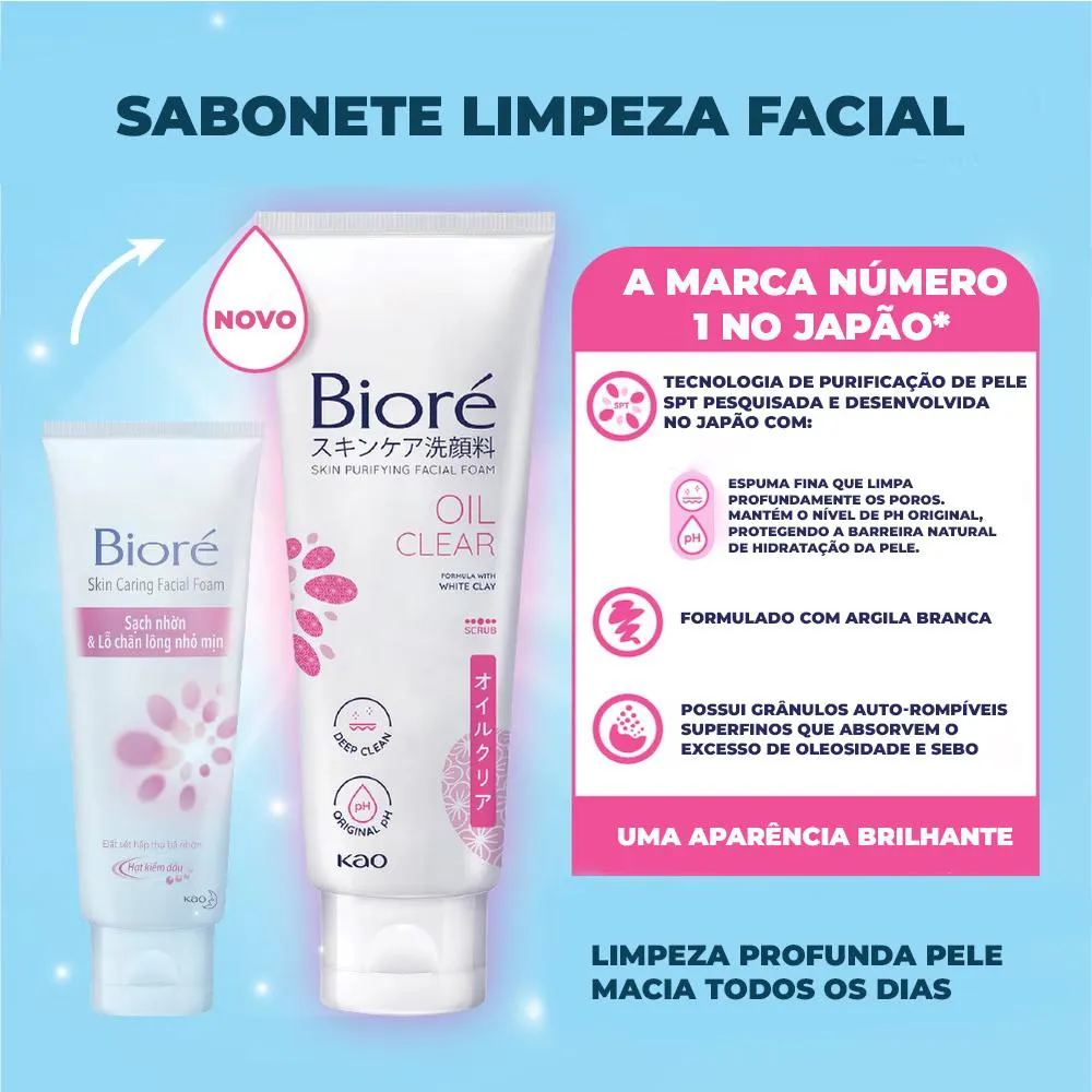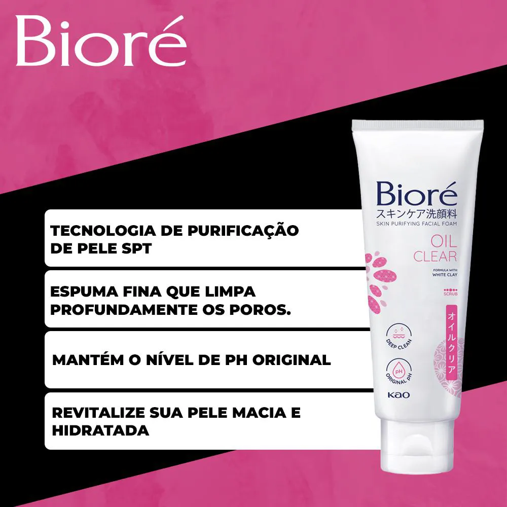 O Sabonete Limpeza Facial Bioré Skin Purifying Oil Clear é um produto de higiene facial desenvolvido especificamente para peles oleosas, com uma fórmula suave e não irritante. Possui textura que cria uma espuma leve e refrescante, acondicionado em uma embalagem compacta de 50g.