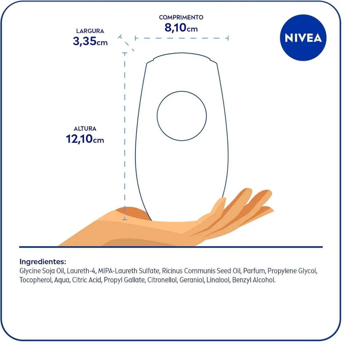 Nivea Sabonete Líquido Óleo de Banho é um sabonete que promove um cuidado único para a pele, deixando-a mais macia e hidratada após o banho. Desenvolvido especialmente para o cuidado no banho, este sabonete é bem prático para o dia a dia, principalmente para levar em viagens. Além de produzir uma espuma cremosa que limpa a pele de forma suave, possui um perfume delicioso. Com 55% de óleos naturais presentes em sua fórmula, este produto proporciona sensação de pele nutrida e bem cuidada. É dermatologicamente testado e livre de microplásticos, por isso cuida não somente da sua pele, mas também do meio ambiente.
