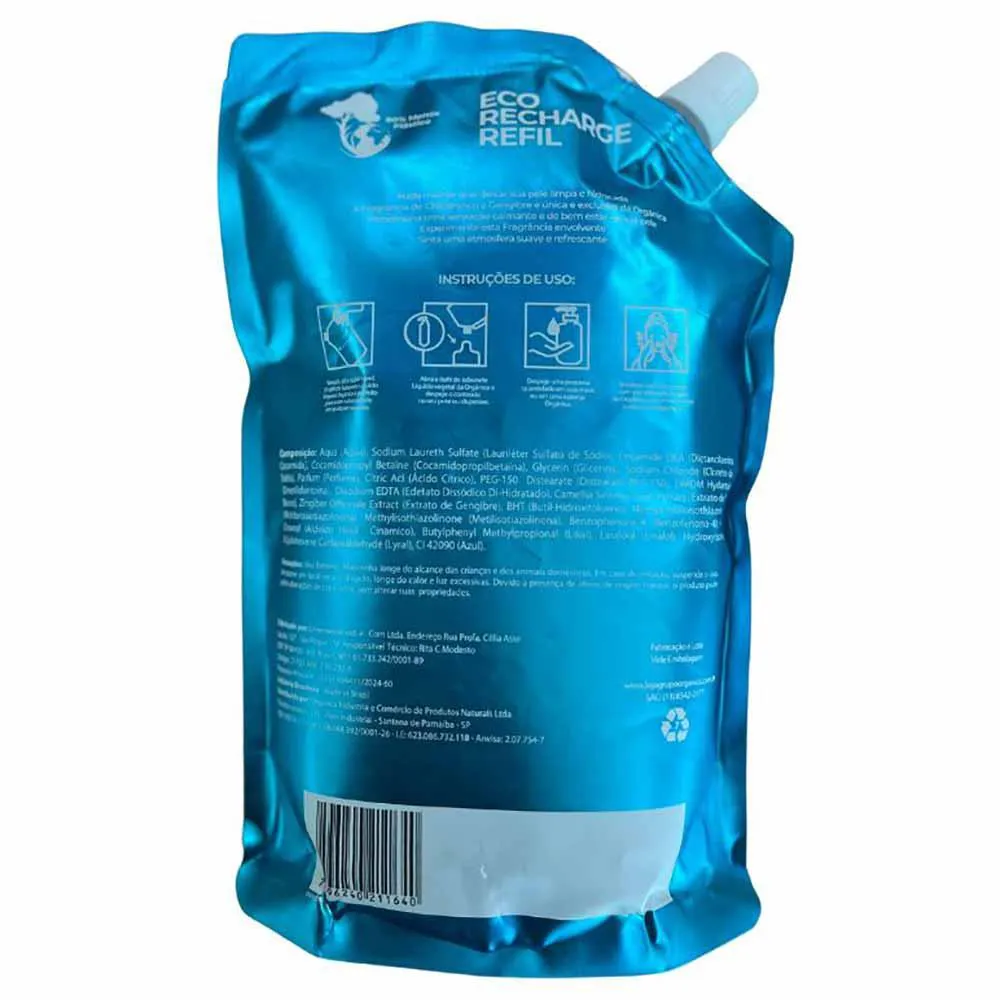 Sabonete Líquido Orgânica Refil Chá Branco e Gengibre