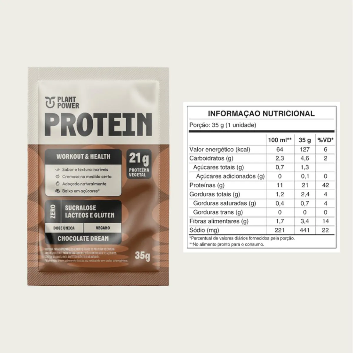 É um suplemento alimentar proteico vegetal em sachê, com sabor de chocolate, desenvolvido para auxiliar no desenvolvimento muscular e bem-estar físico. Composto por proteína de ervilha, possui 21g de proteína por porção, sendo livre de glúten e lactose, com textura cremosa e sabor diferenciado.