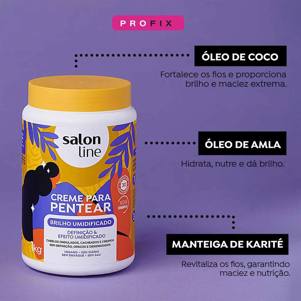 O Creme para Pentear Salon Line Brilho Umidificado veio para definir os cachos e crespos proporcionando brilho intenso e umidificado, garantindo controle de volume e frizz. Seus benefícios são: definiçaõ dos cachos, controle de frizz, efeito ultra umidificado e hidratação. rende até 30 aplicações. possui filtro uv. O resultado é um cabelo super definido e com volume controlado, brilho radiante e nadinha de frizz.