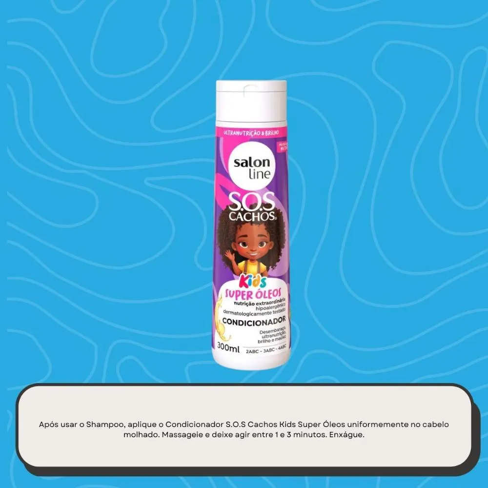 - 01 – Condicionador Salon Line SOS Cachos Kids Super Oleos para Cabelo Cacheado 300 mlSugestão de uso complementar