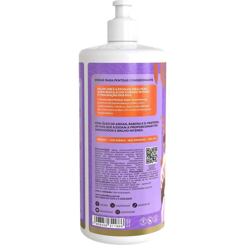 O Salon Line Super Desembaraço Creme de Pentear é um produto capilar desenvolvido especialmente para cabelos ondulados, crespos e cacheados, que funciona como um creme condicionador para pentear. Formulado com ativos como babosa, óleo de argan e D-pantenol, o produto oferece um tratamento capilar completo que pode ser realizado em casa.