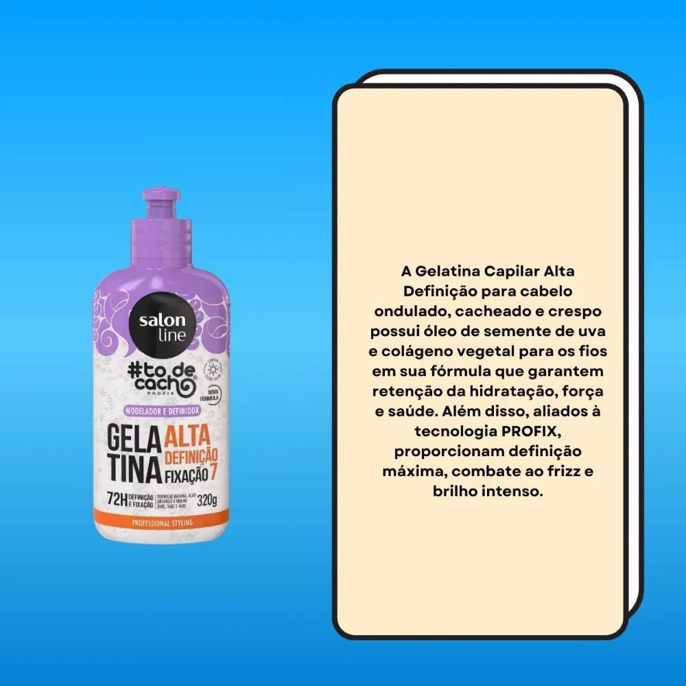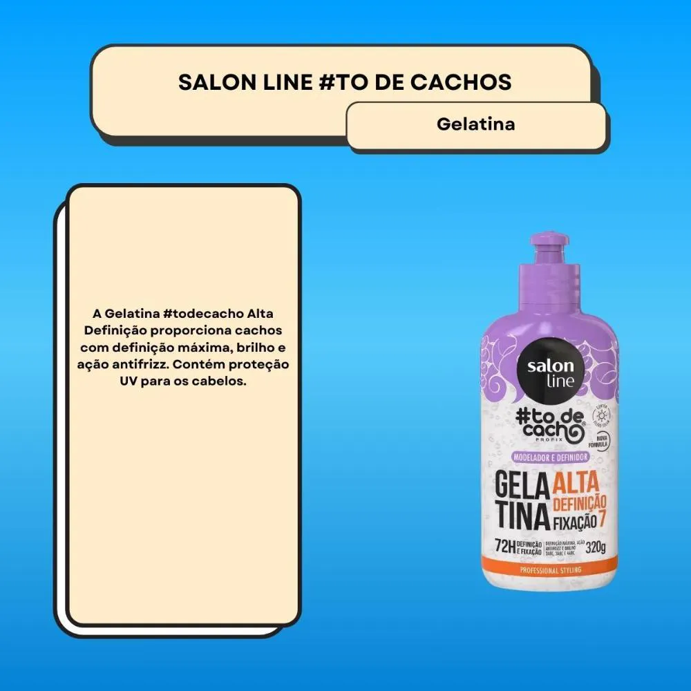 Gelatina Salon Line #todecacho Alta Definição 320 g é um cuidado para cabelos pensado para entregar desempenho na rotina, com foco no que a categoria promete (finalizador).Para Qual tipo de cabelo é Indicado?