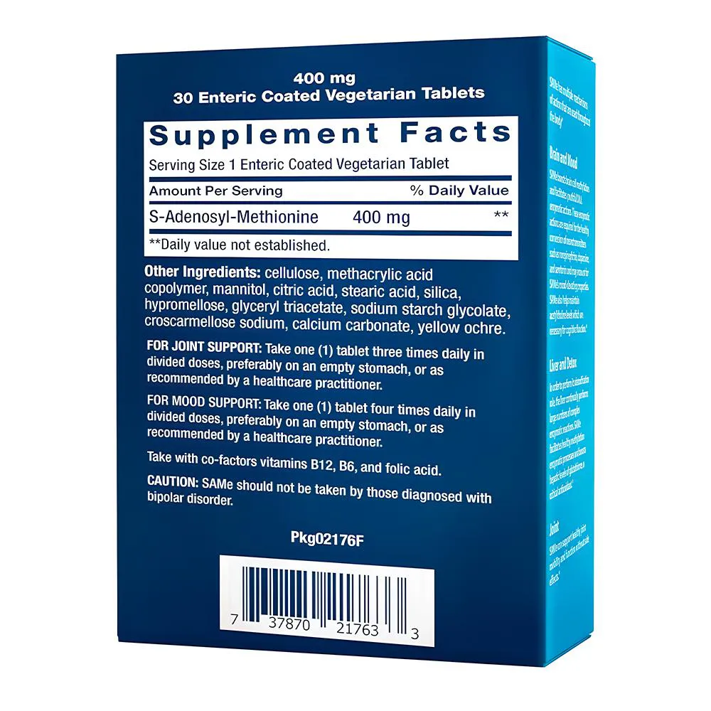 Life Extension SAMe 400mg - Suporte Premium para Bem-Estar Emocional, Conforto Articular e Função Hepática. Fórmula Avançada com 30 Comprimidos para o seu Equilíbrio Diário.