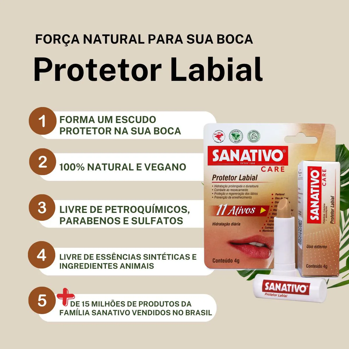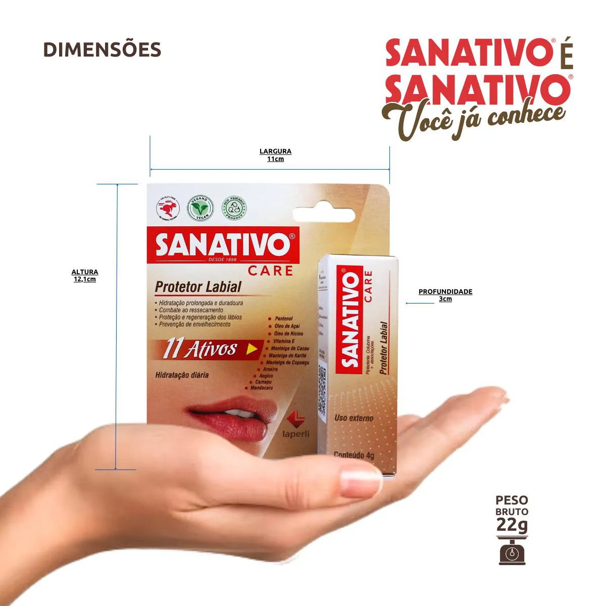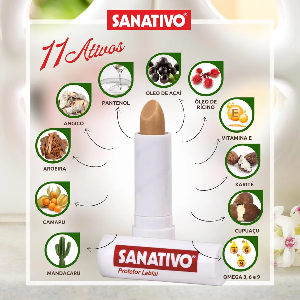 Protetor Labial Sanativo com 11 ativos - Hidratação diária 4g