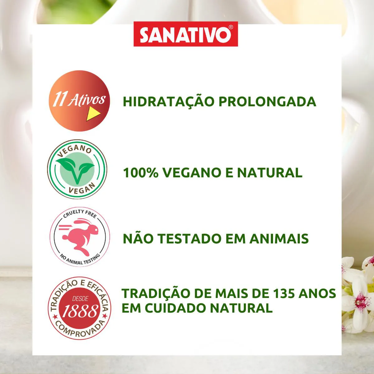 - Hidratação prolongada com 11 ativos naturais, incluindo o exclusivo blend de Aroeira, Angico, Camapu e Mandacaru