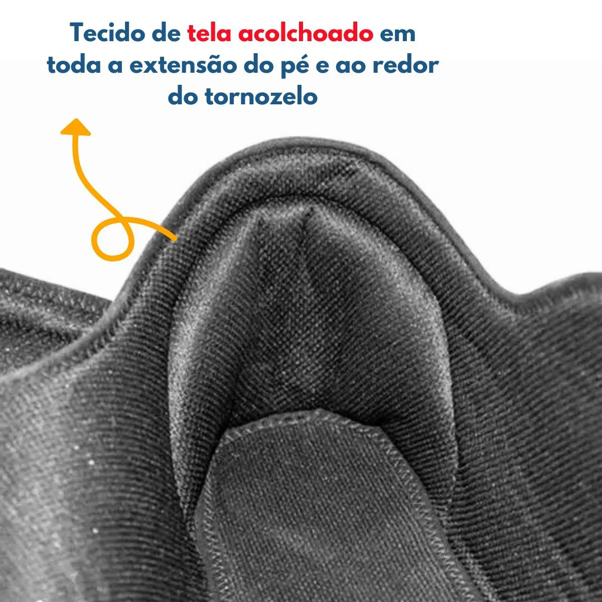 - Possui design ergonômico com tecido de tela acolchoado que protege toda extensão do pé.