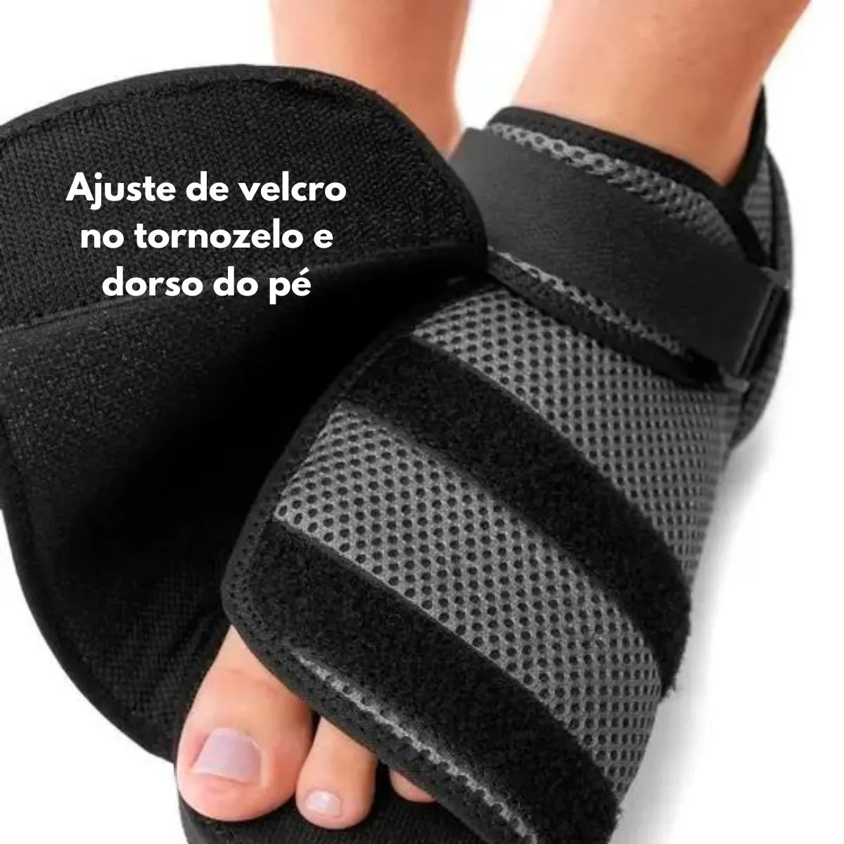 - Oferece ajuste personalizado com sistema de velcro no tornozelo e dorso do pé.