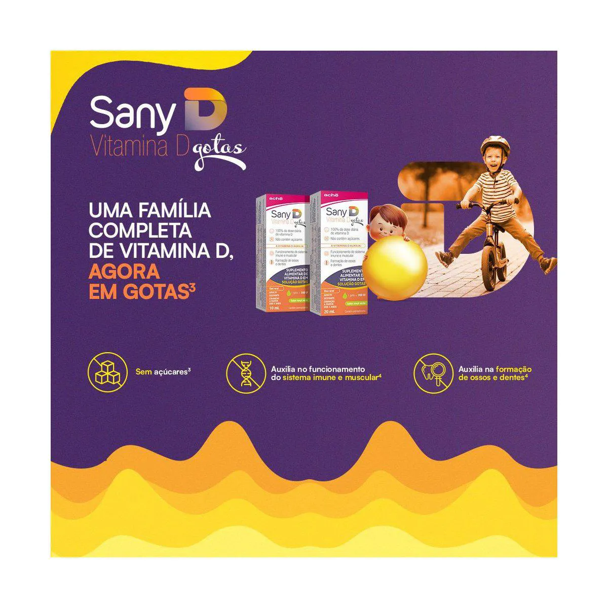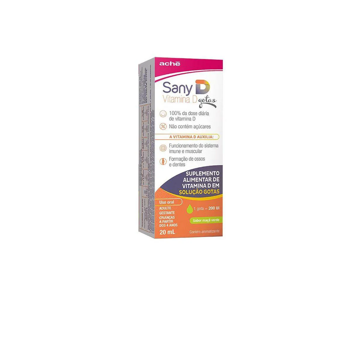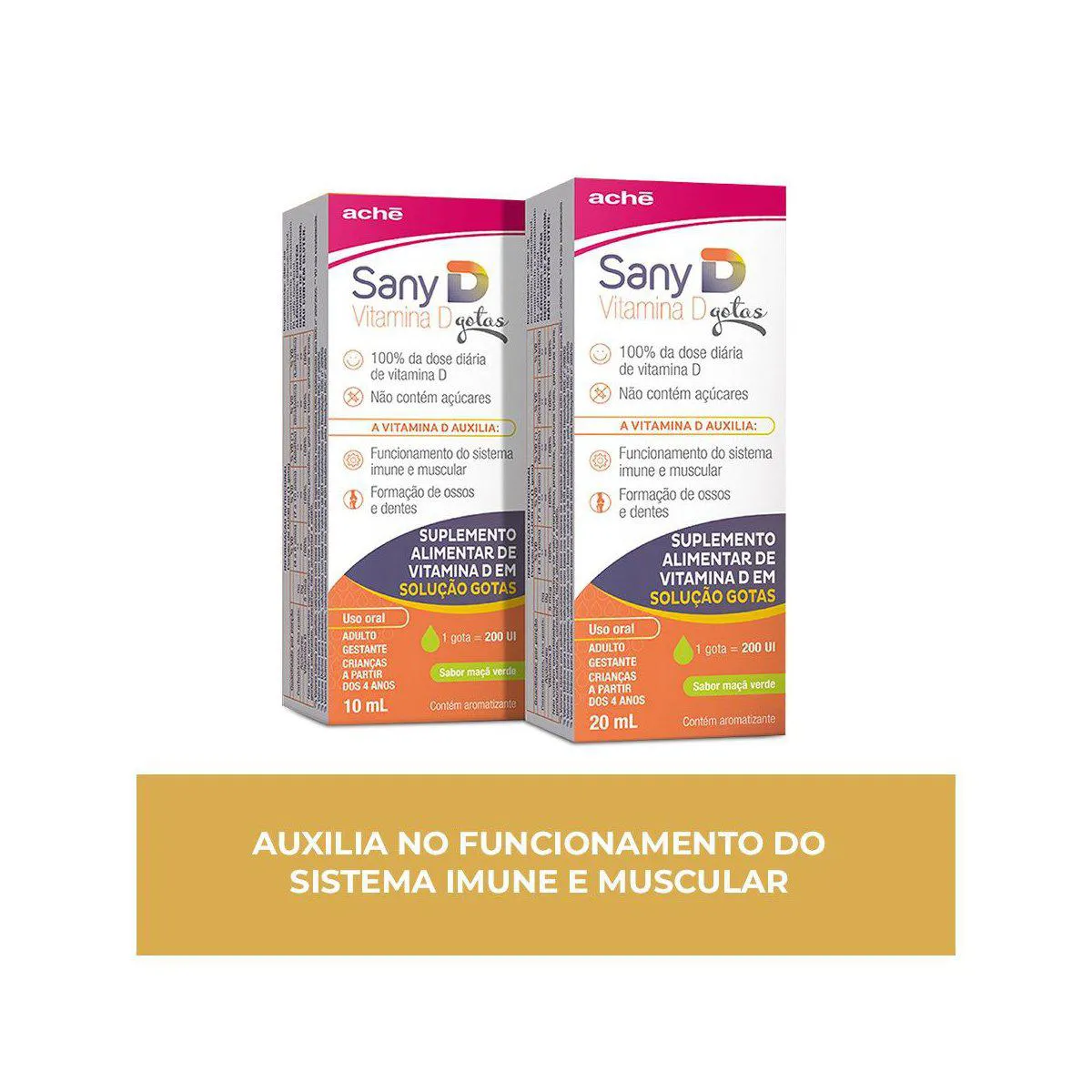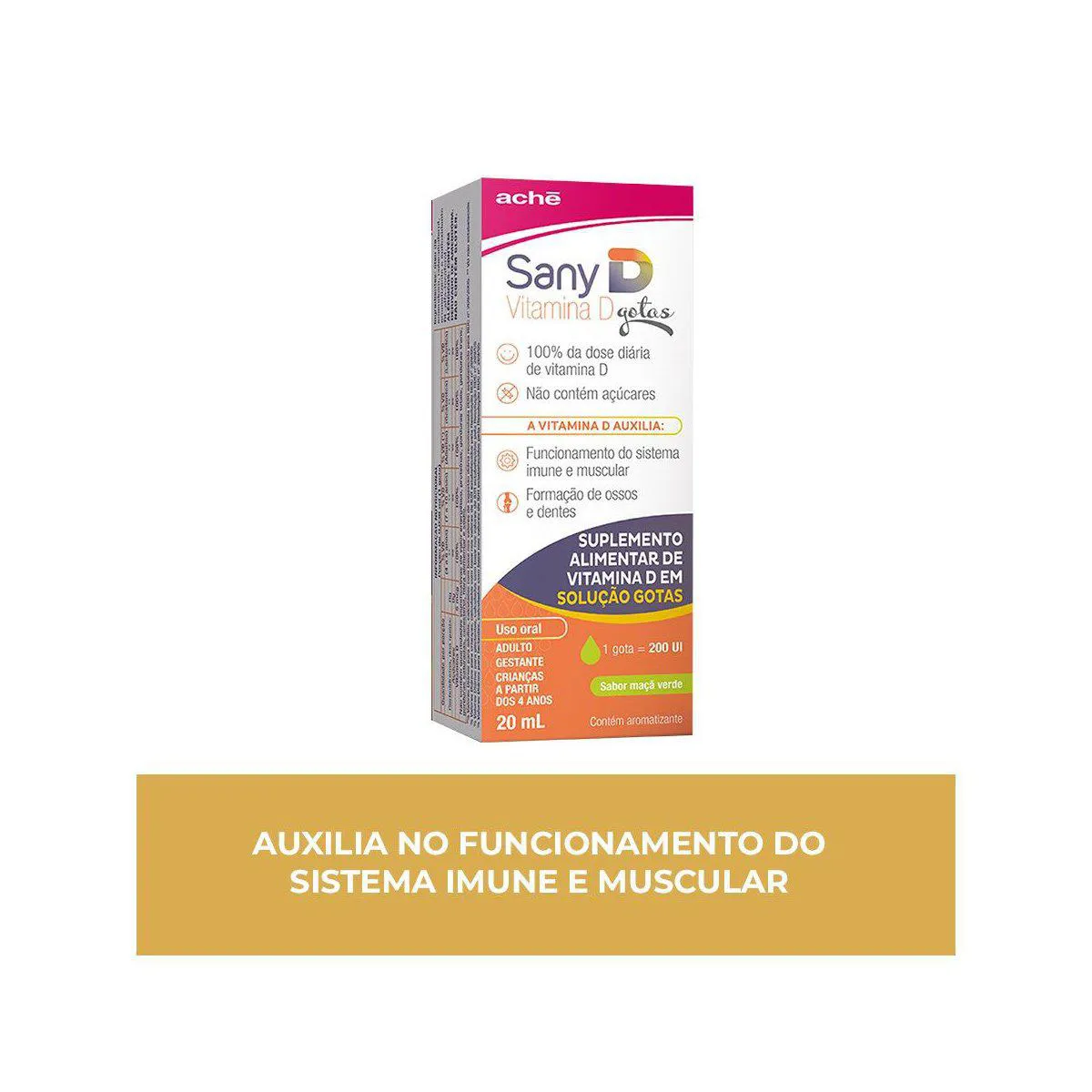 Sany D gotas oferece 100% da dose diária de vitamina D (1 gota = 200UI). Ele auxilia no funcionamento do sistema imune e muscular e também atua na formação de ossos e dentes.