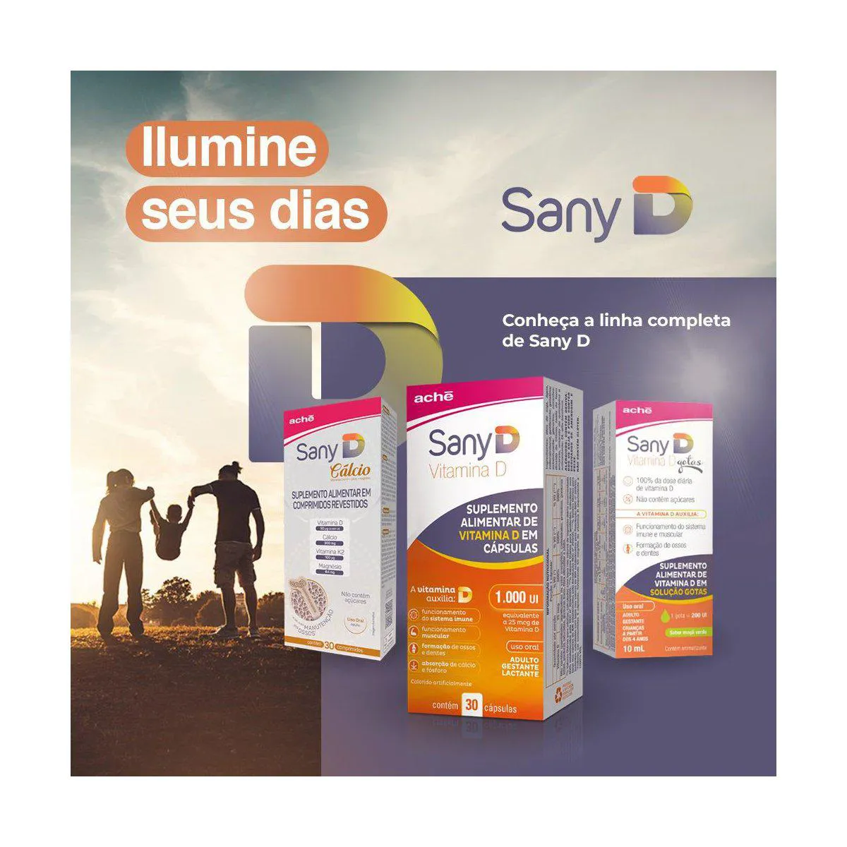 Sany D é um suplemento alimentar a base de vitamina d (colecalciferol) no sabor maçã verde.