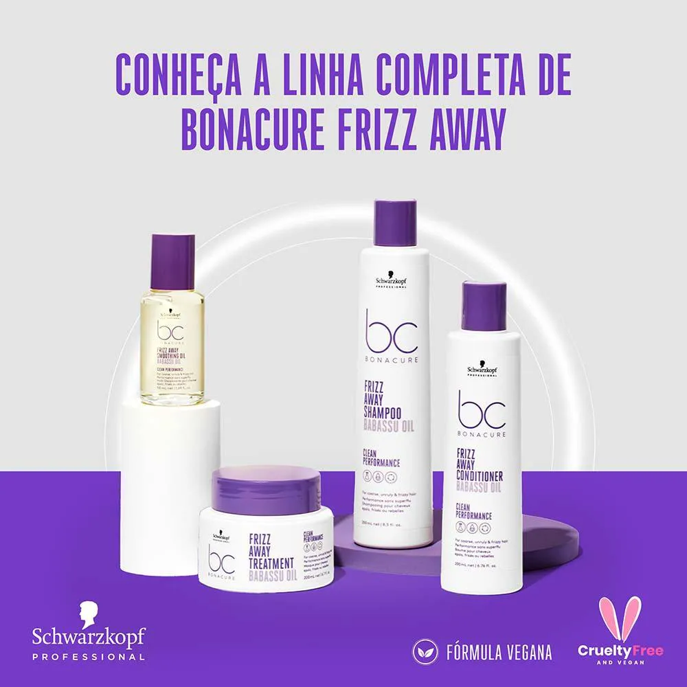 A linha Bonacure Frizz Away com Óleo de Babaçu foi desenvolvida com fórmula inteligente que controla o frizz de lavagem em lavagem, minimizando o tempo de finalização e facilitando o desembaraçar. Para um cabelo mais suave, brilhante, hidratado e maleável.
