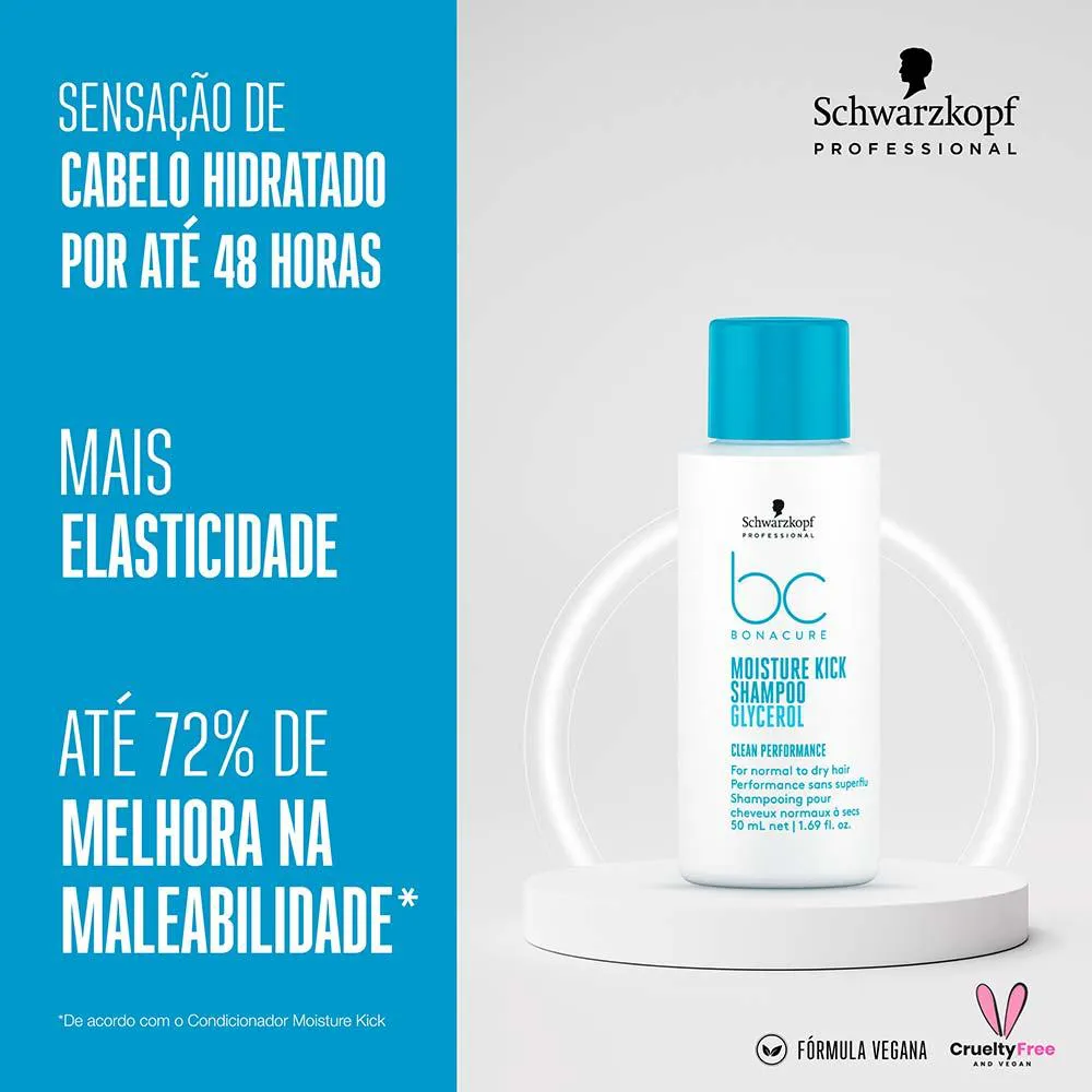 O Schwarzkopf Bc Clean Performance Moisture Kick Shampoo é um produto de higiene capilar desenvolvido especificamente para cabelos normais a secos, ondulados ou cacheados. Sua fórmula contém Glicerol, um componente hidratante que proporciona uma sensação de cabelo hidratado por até 48 horas.