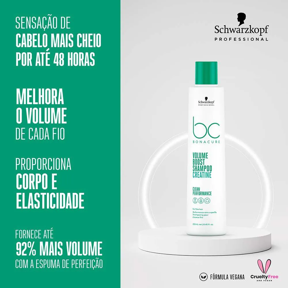 Volume Boost para cabelos finos com creatina que fornece maior volume com até 48 horas de sensação de cabelo mais cheio.