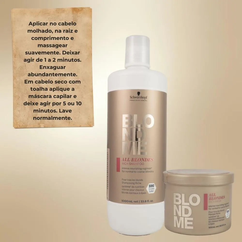 Varia conforme a categoria (shampoo, máscara, finalizador) e a necessidade do seu cabelo. CTA: Inclua o Kit Schwarzkopf BlondMe Shampoo 1 Litro e Máscara 500 ml na sua rotina e mantenha a constância para evoluir o resultado a cada uso.
