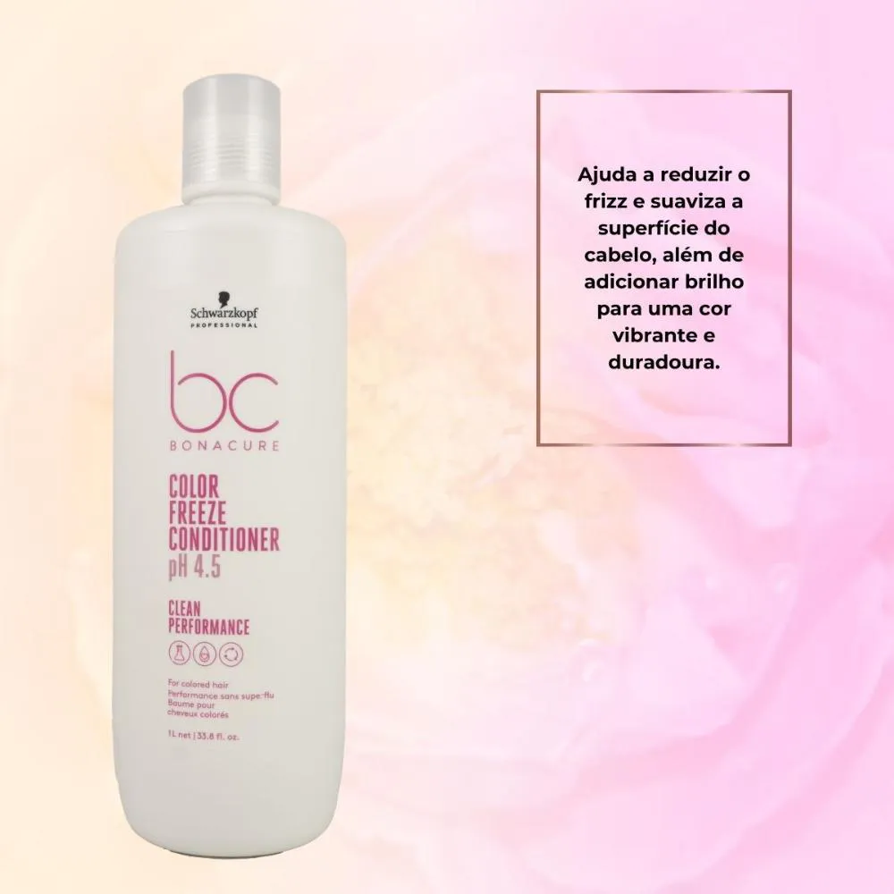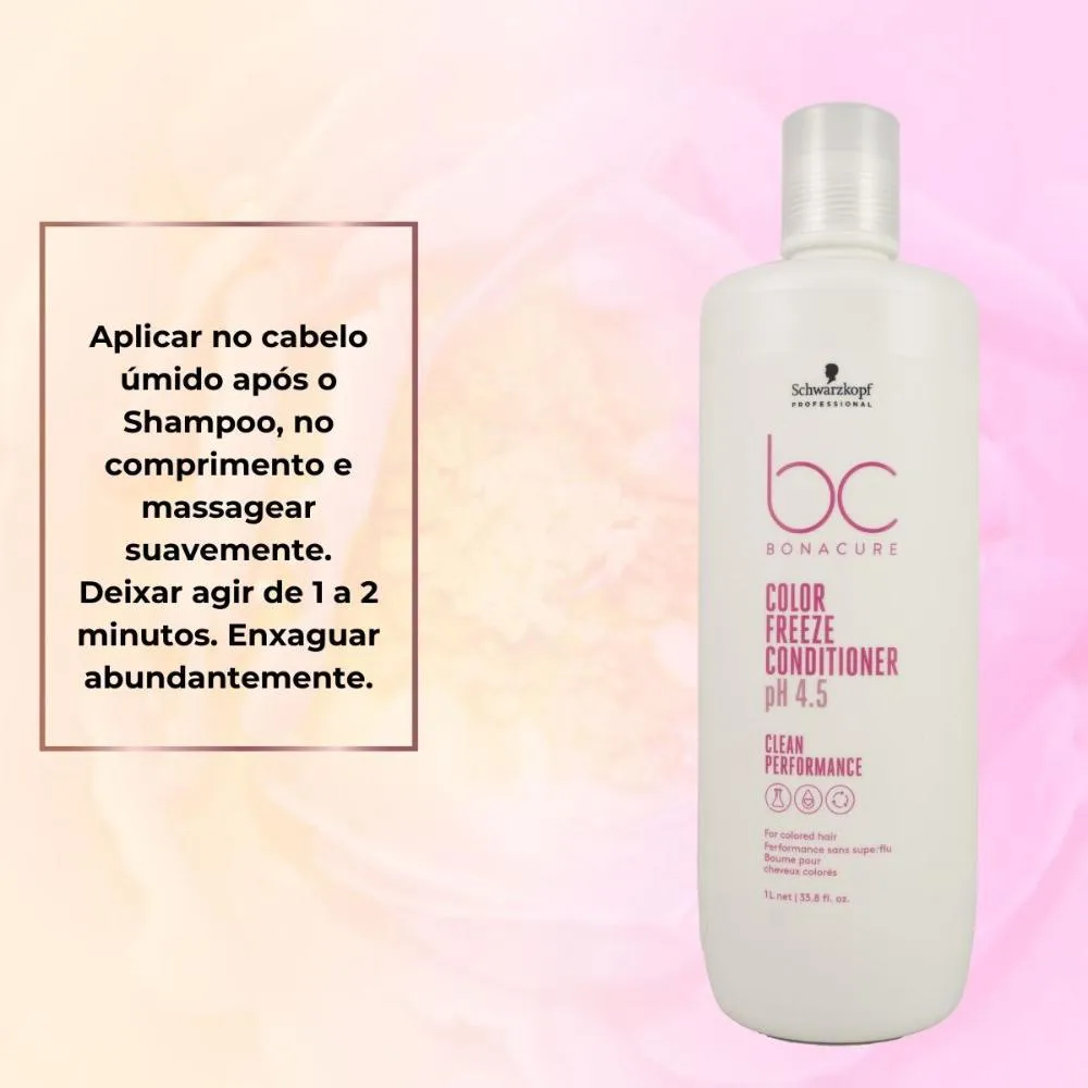 Varia conforme a categoria (shampoo, máscara, finalizador) e a necessidade do seu cabelo. CTA: Inclua o Condicionador Schwarzkopf Color Freeze pH 4.5 1 Litro na sua rotina e mantenha a constância para evoluir o resultado a cada uso.