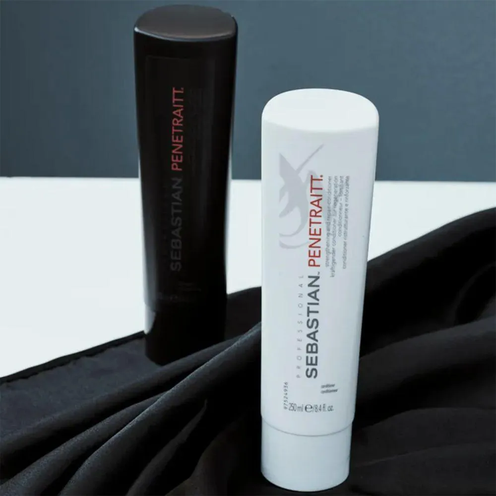 Cabelos danificados e sem vida? O Condicionador Sebastian Penetraitt é a solução que você precisa! Desenvolvido especialmente para cabelos extremamente danificados por químicas e ferramentas térmicas, o Penetraitt age como um verdadeiro resgate capilar. Sua fórmula rica em proteínas de soja, seda e trigo penetra profundamente na fibra capilar, reparando os danos, fortalecendo os fios e devolvendo o brilho e a maciez que seus cabelos merecem. Por que você vai amar o Sebastian Penetraitt:- Reparação profunda: Restaura os fios danificados de dentro para fora.