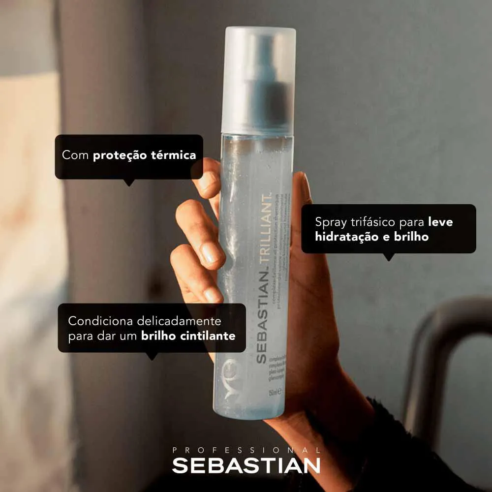 O Trilliant da Sebastian é um leave-in em spray de brilho, desenvolvido para condicionar delicadamente e proteger os cabelos, enquanto proporciona volume e brilho reluzente.