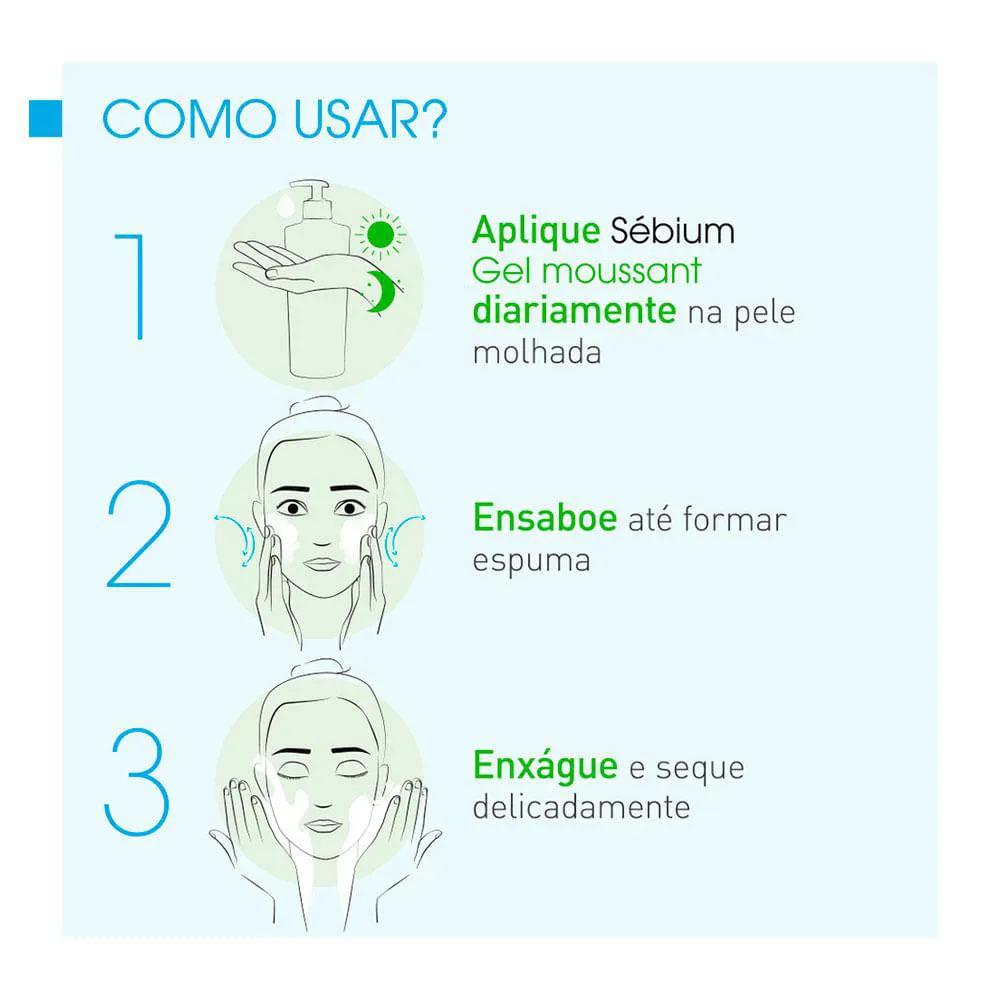 O Único com ação biológica que age na qualidade do sebo, prevenindo as imperfeições. Sébium Gel Moussant limpa a pele mista e oleosa, limita a formação de imperfeições e regula biologicamente a qualidade do sebo. Purifica a pele, graças à ação seborreguladora e antibacteriana do complexo Sulfato de Cobre + Sulfato de Zinco.