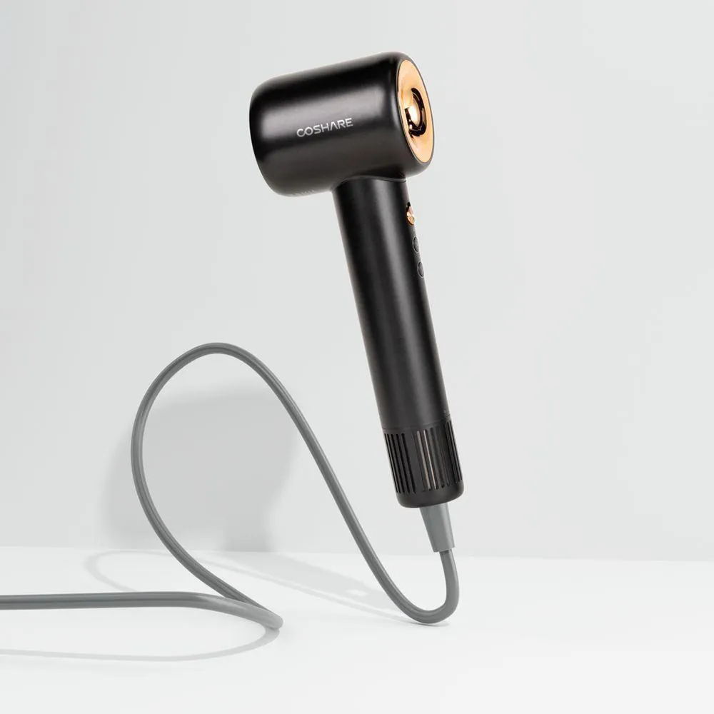 Coshare High Speed Hair DryerNovo secador de cabelo de alta velocidade que revoluciona a experiência de cuidar dos cabelos com sua tecnologia avançada e design inovador.Detalhes:11.0000 RPM - Secador de cabelo de alta velocidade com secagem rápida.Sistema inteligente de controle de temperatura, garante que o cabelo não seja danificado durante a secagem.O iônico negativo produz calor suave e natural para secar o cabelo de forma rápida e suave, ao mesmo tempo que neutraliza a eletricidade estática e mantém os níveis de umidade por meio de sua produção de até 800 milhões de íons negativos.Anel de essência nutritivo, com uma fragrância cativante, nosso anel de essência infundido com extratos de plantas, melhora a experiência de secagem do cabelo. Hidrata, melhora e elimina o frizz.O anel de essências contribui com a nutrição, proteção contra danos, brilho intenso. É facilmente substituível.Design compacto e super leve, fabricado com materiais de alto padrão, pesando apenas 370 gramas, é perfeito para colocar na mala, levar para a academia ou piscina e estilizar em qualquer lugar.Projetado com recursos de segurança, incluindo um sistema de proteção contra superaquecimento e design à prova de vazamentos, para evitar vazamentos acidentais.Seguro, eficiente, de alta qualidade e com baixo ruído.Escolha perfeita para pessoas que prestam atenção especial à saúde e ao cuidado de seus cabelos. É um ótimo presente para amigos, familiares e entes queridos que apreciam tecnologia avançada e design moderno, sem comprometer a saúde dos cabelos.Informações técnicas- Marca: Coshare- Potência: 1500 watts