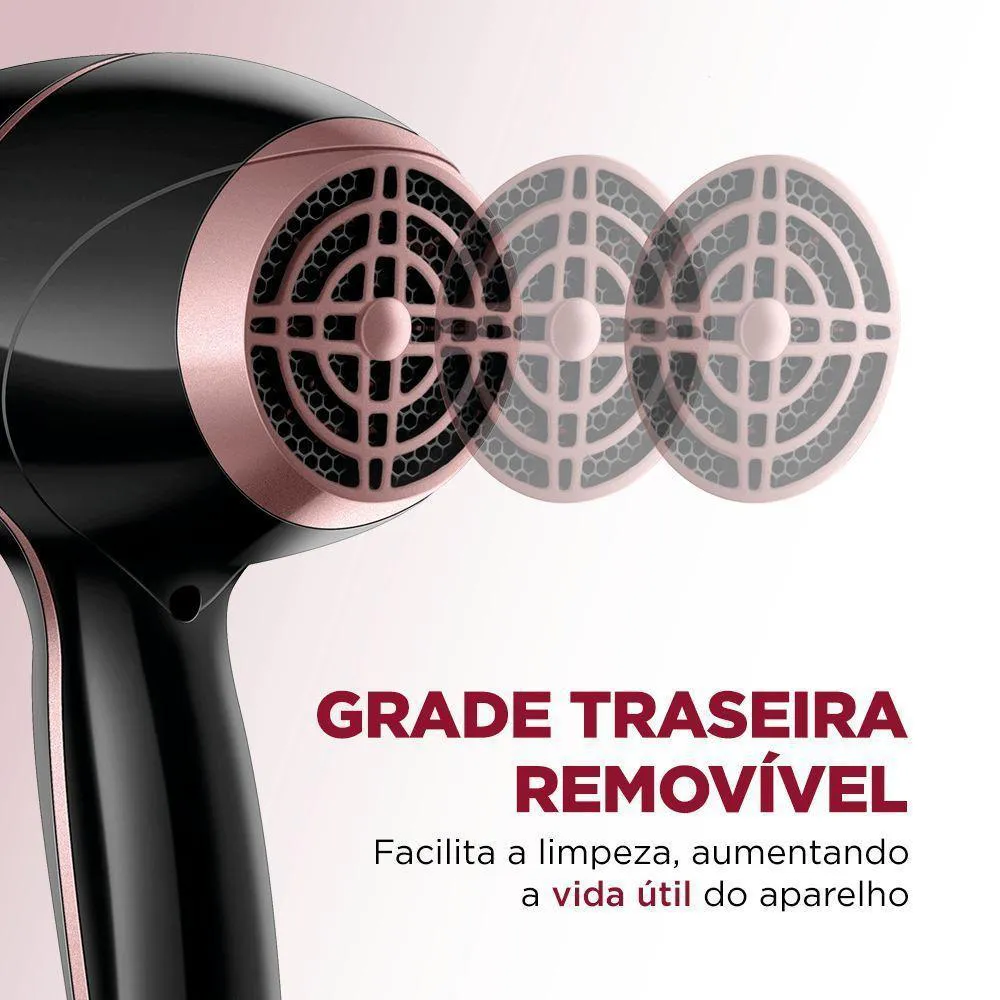 ALTA POTÊNCIA: Os 2.000W deixam seu cabelo seco, modelado e lindo com rapidez e eficiência.