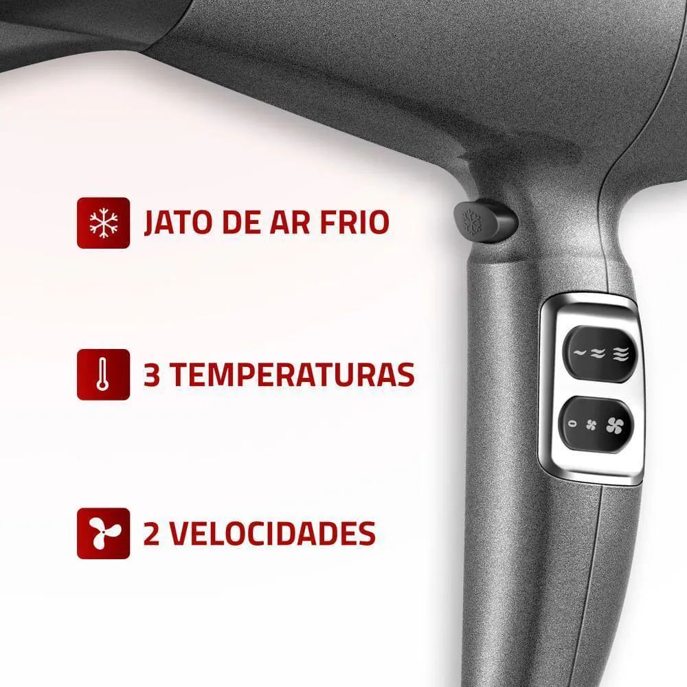 - 3 temperaturas e 2 velocidades para versatilidade.