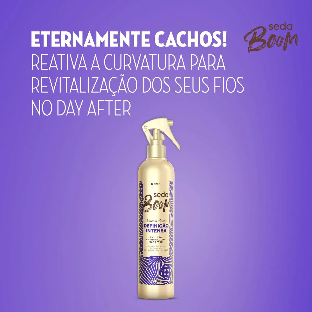 - Com o cabelo seco, borrife Seda boom definição intensa emulsão umidificadora day after.