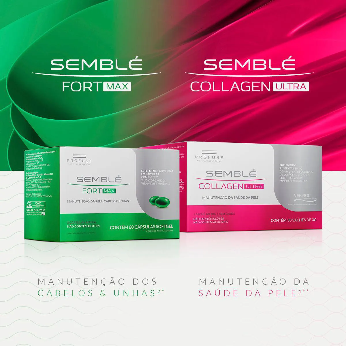 O Semblé Fort Max é um suplemento alimentar em cápsulas que conta com uma fórmula inovadora à base de Silício Orgânico, vitamina d, Biotina, Cobre, Zinco, Ácido Fólico e outras Vitaminas e minerais que, quando combinados, auxiliam no fortalecimento e manutenção da saúde da pele, cabelos e unhas.