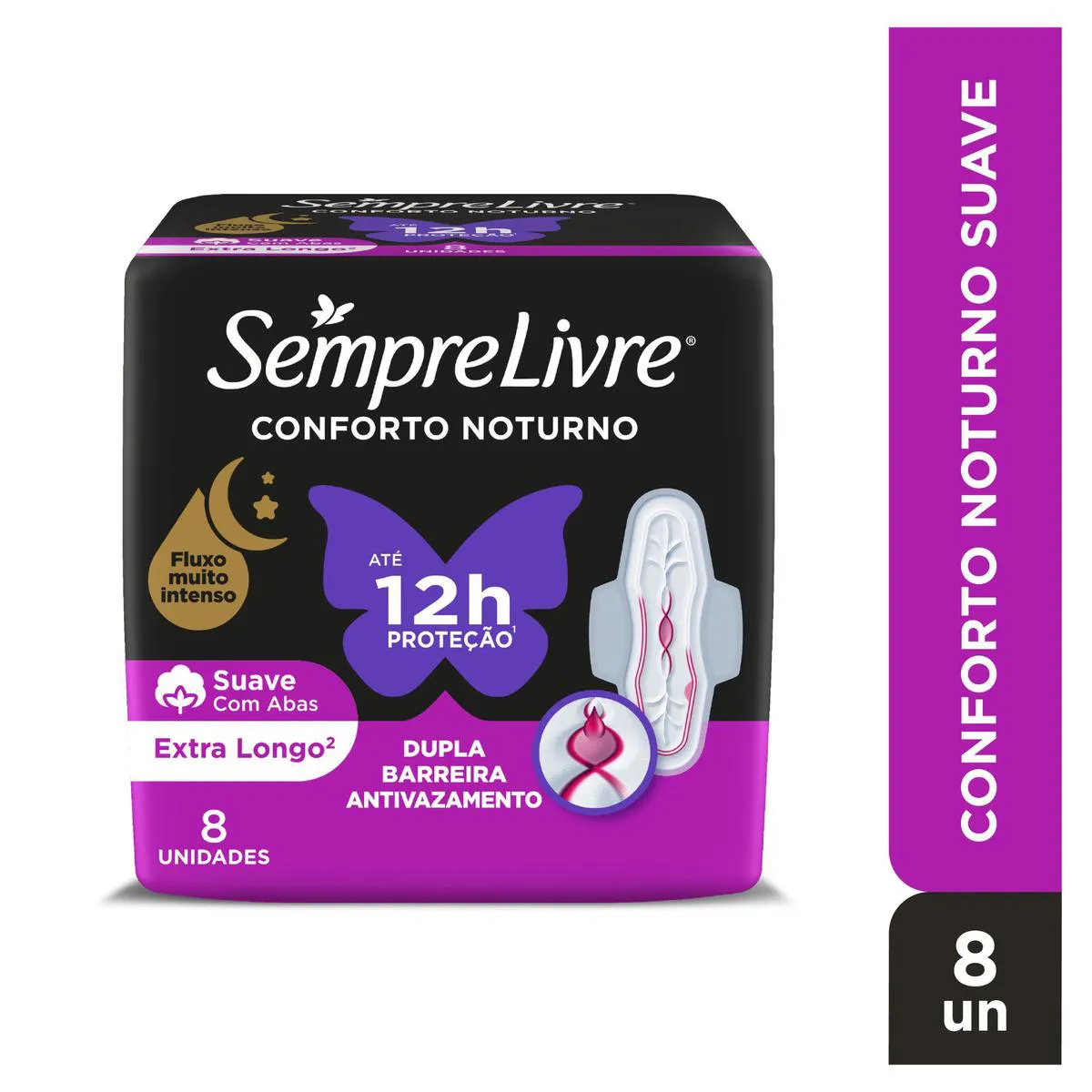 Absorvente Sempre Livre Conforto Noturno Cobertura Suave Com Abas com 8 unidades
