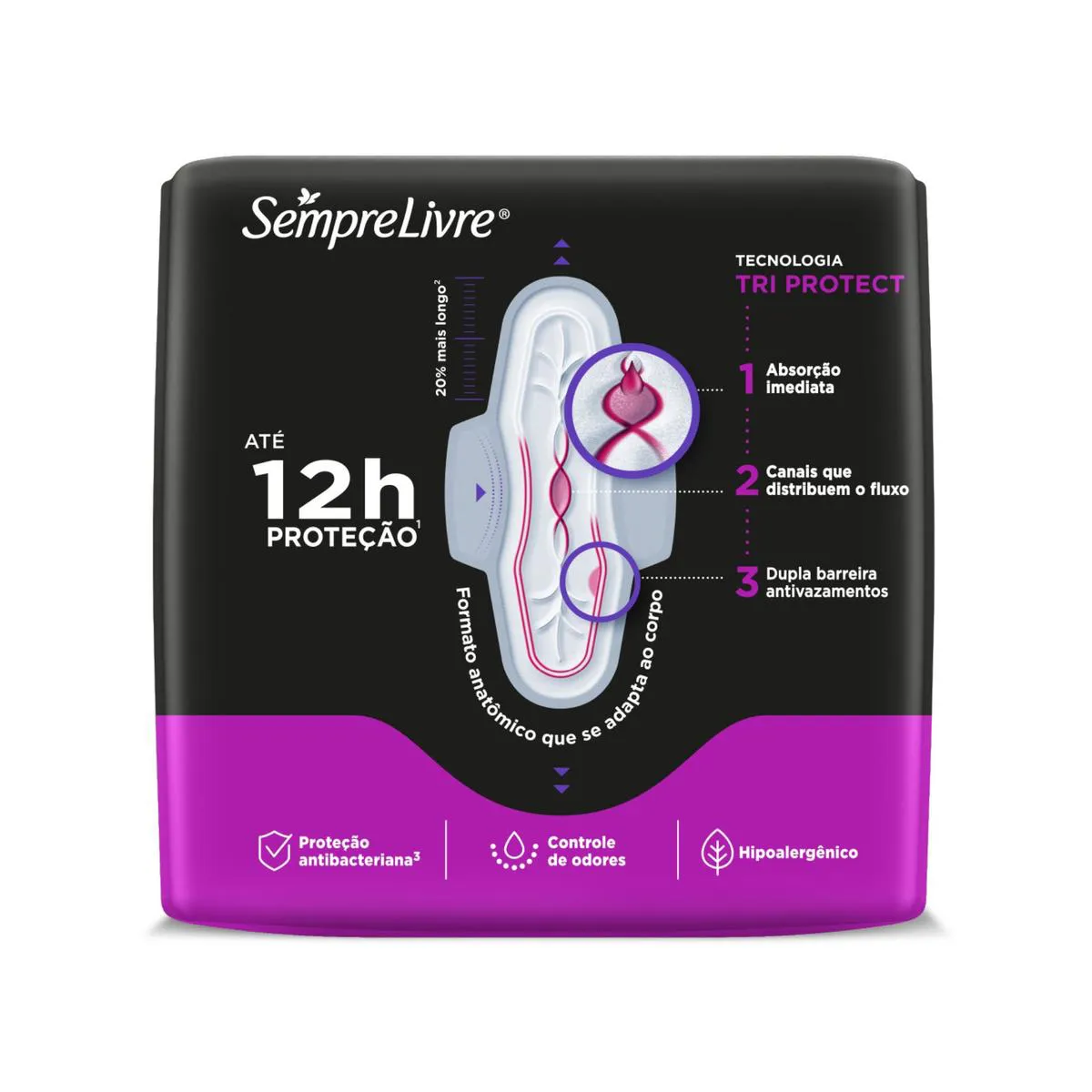 Com o dobro de cápsulas de gel superabsorventes, Sempre Livre Conforto Noturno tem um formato ideal que se ajusta ao corpo, além de acompanhar os movimentos, oferecendo 100% de proteção. Contém abas para melhor segurança e sua cobertura é suave, sendo mais confortável no contato com a pele.