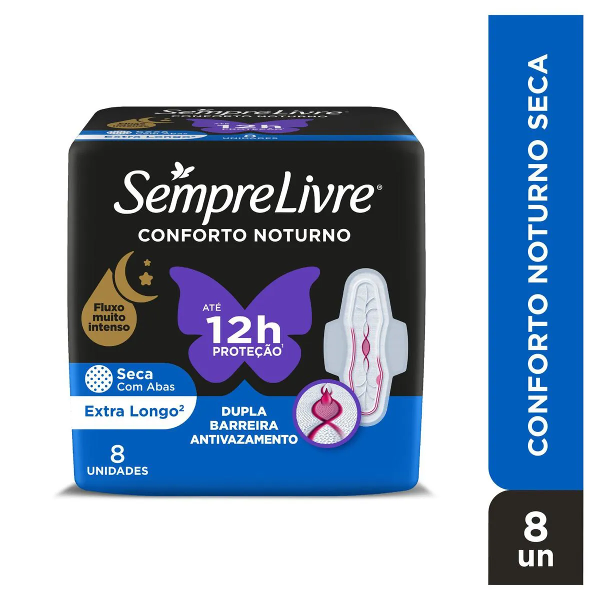 Absorvente Sempre Livre Conforto Noturno Cobertura Seca Com Abas com 8 unidades