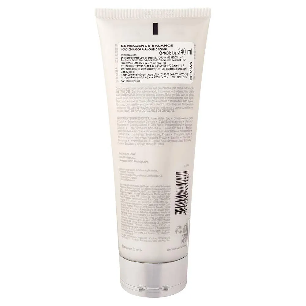 O Balance condicionador de Senscience contém uma fórmula especial que nutre e mantém a hidratação equilibrada e o cabelo saudável, deixando os flexíveis e sem resíduos.