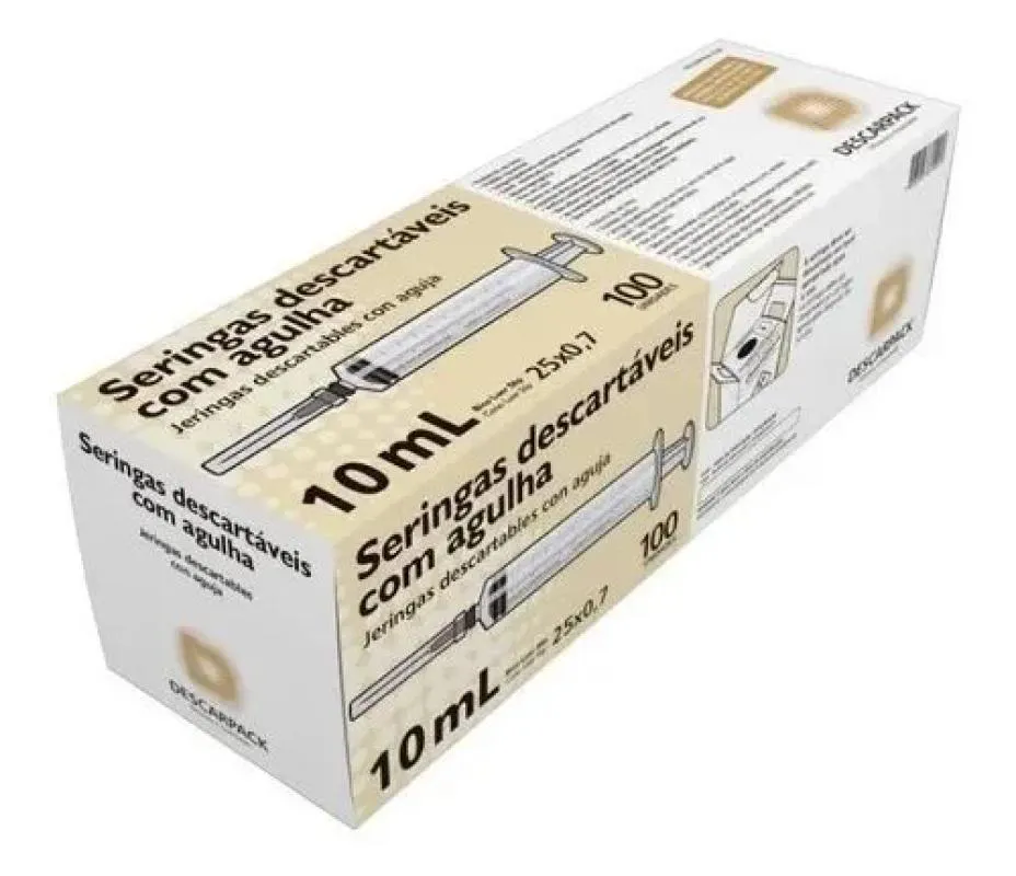 Seringa 10Ml Slip com Agulha 25X0,7 Cx 100Un Descarpack