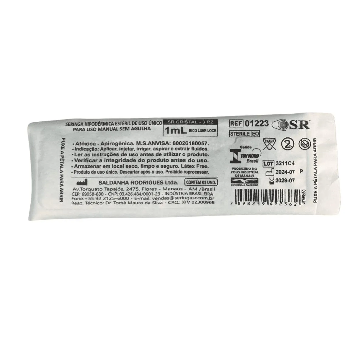 Seringa 1Ml Cristal Policarbonato Residuo Zero 1,0Ml Sr 20Un