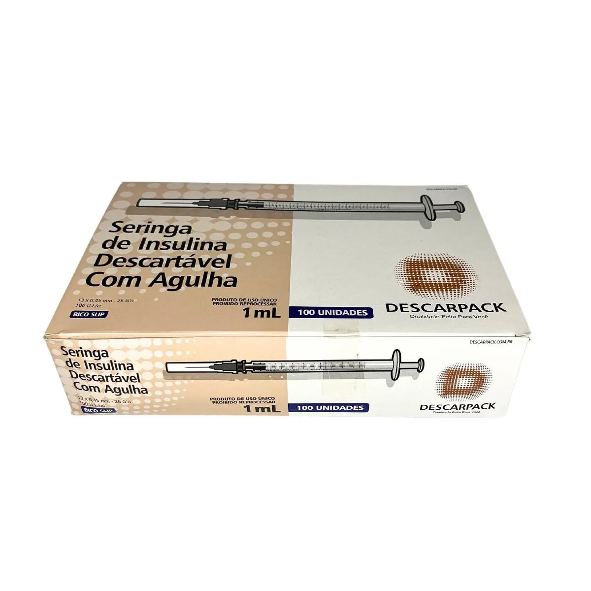 Seringa de Insulina Descarpack 1 ml com Agulha Caixa com 300 Unidades