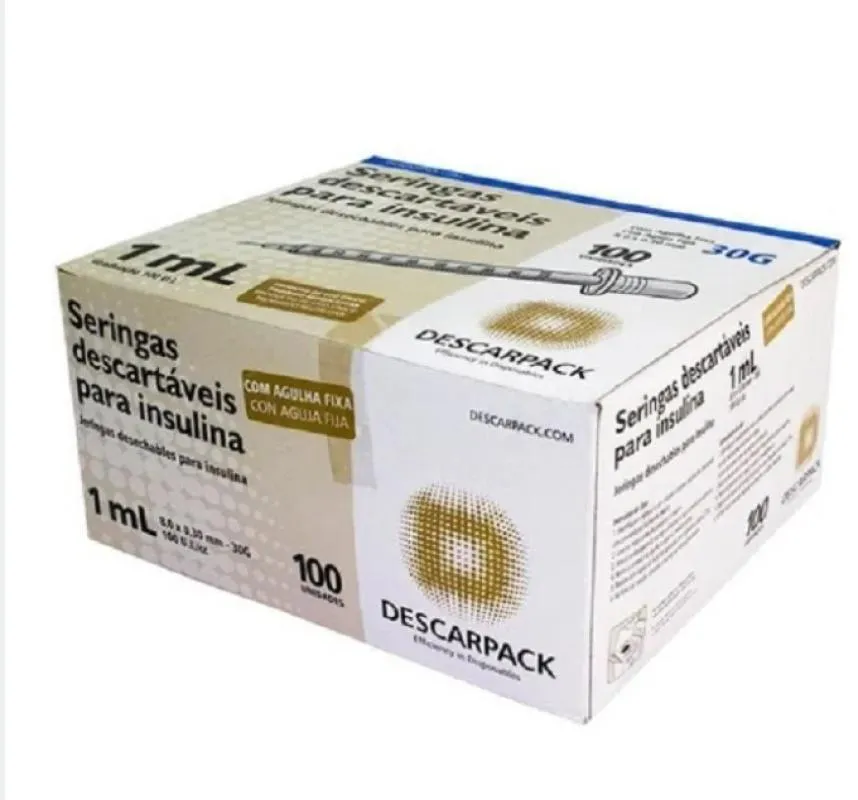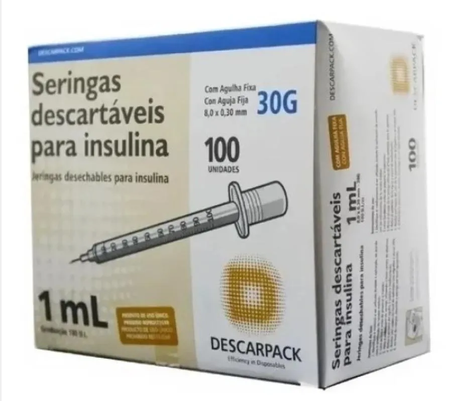 SERINGA DE INSULINA 1ML AGULHA FIXA 8X0,30MM KIT 200UN - Descarpack Indicações: Para aplicação de insulina pela via subcutânea em pacientes com diabetes. Características: