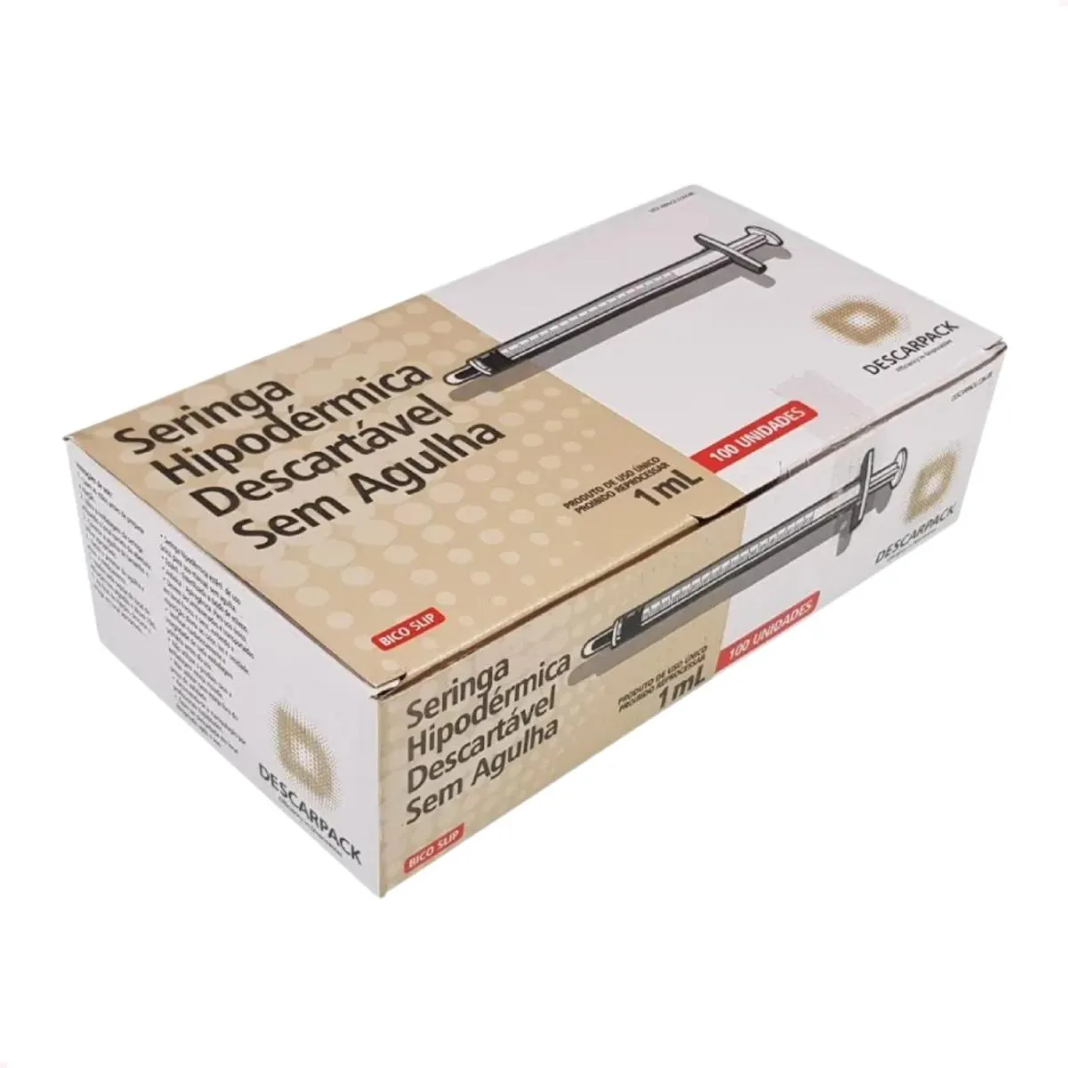 Seringa Hipodérmica Luer Slip 1ml Sem Agulha ; Descarpack | Cartucho com 100 Unidades