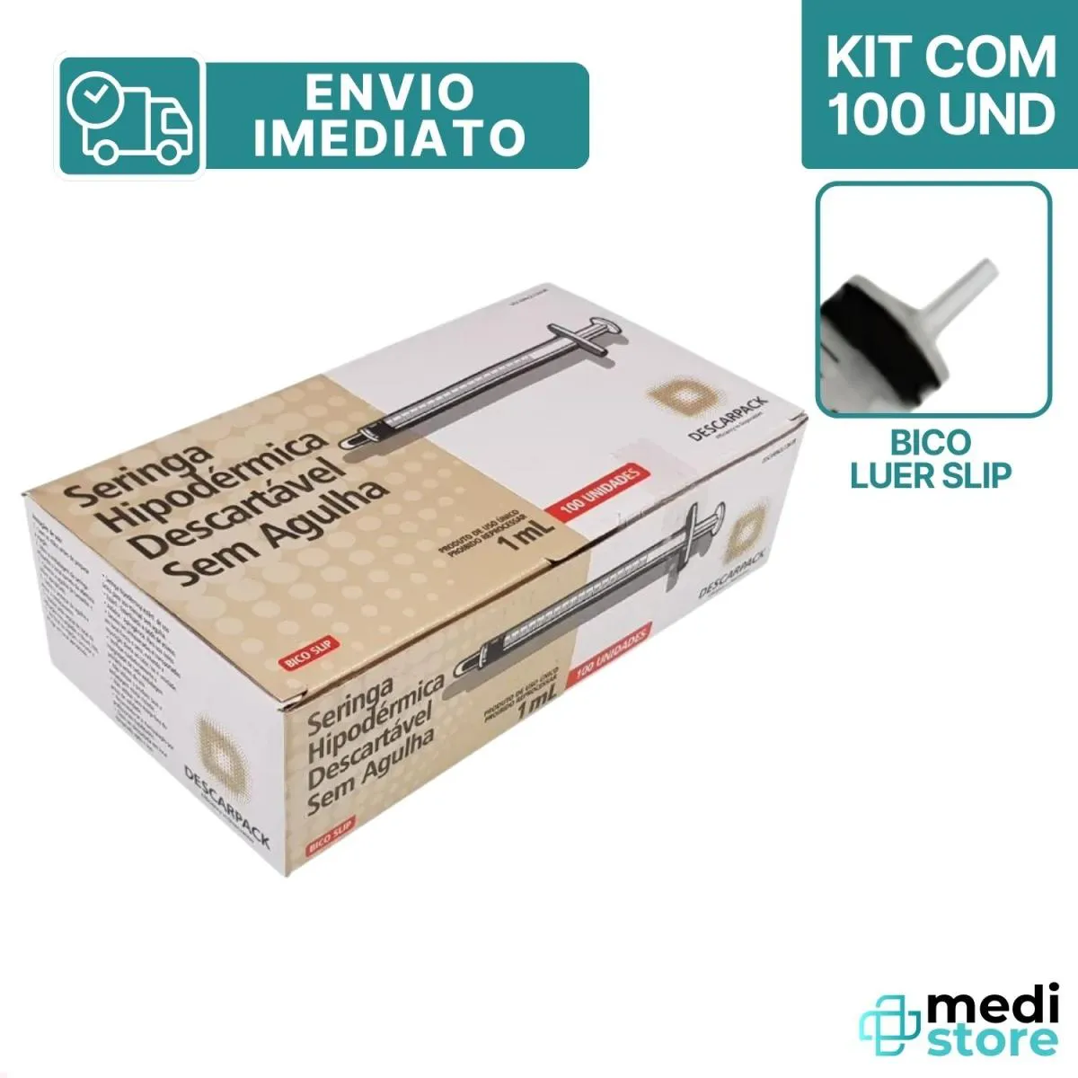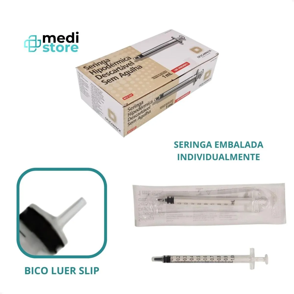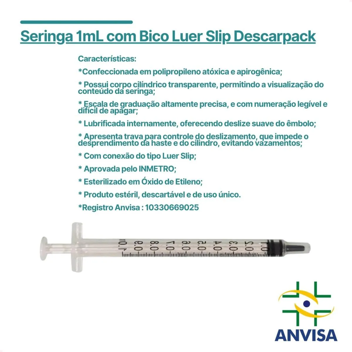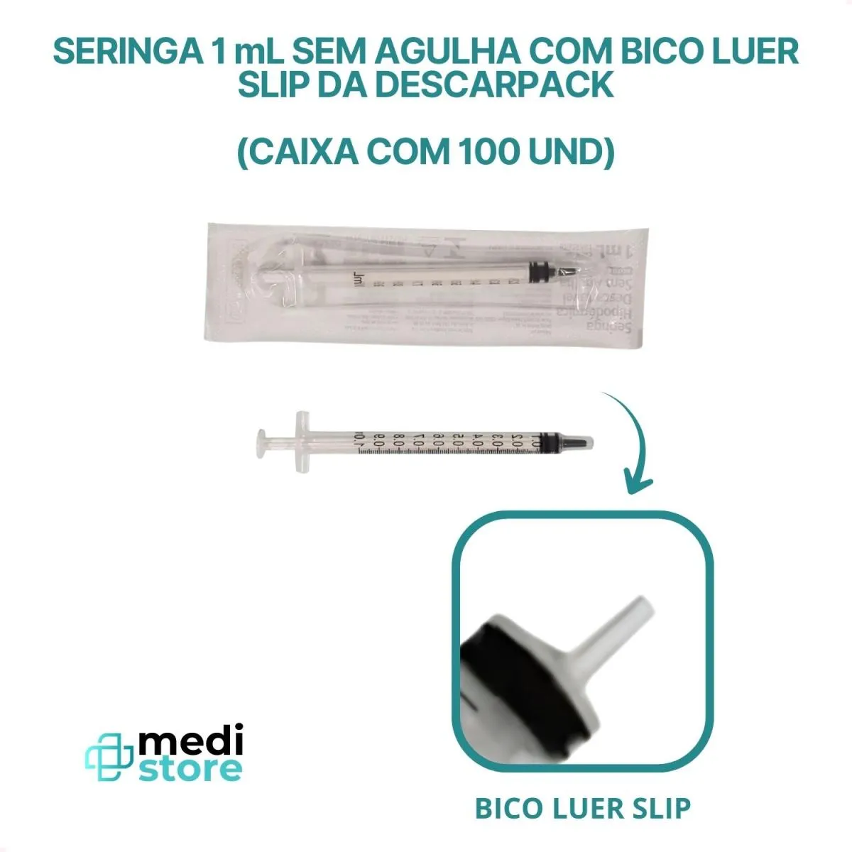 Seringa sem Agulha 1Ml Bico Slip Descartável Descarpack 100U