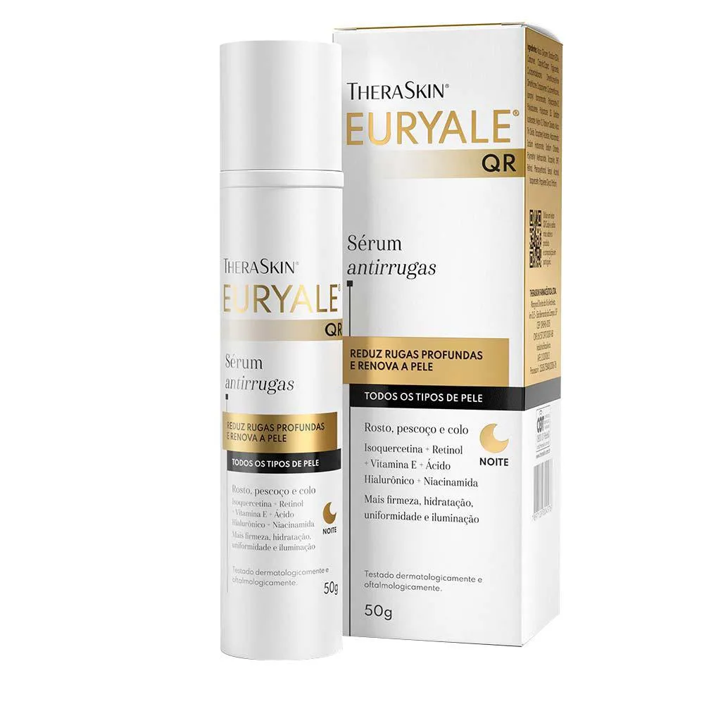 Sérum anti-idade Theraskin – Euryale QR é um sérum anti-idade para uso noturno com ação antioxidante que reduz as rugas mais profundas e linhas de expressão.