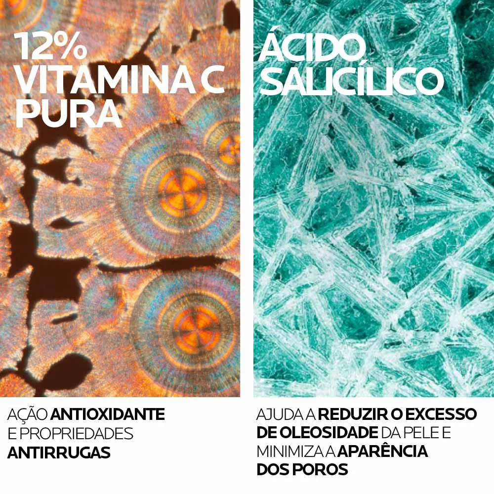- Fórmula com Vitamina C pura e ácido salicílico.