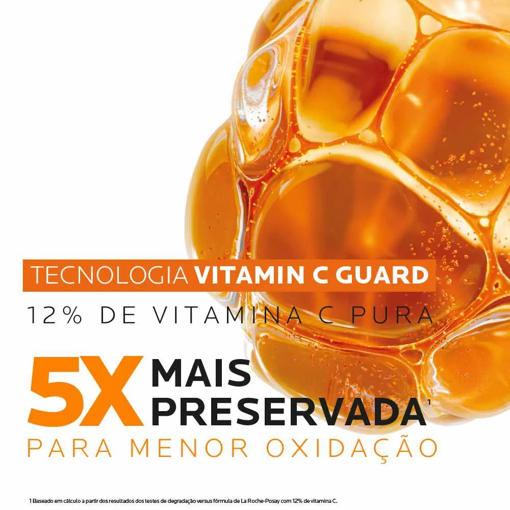Este sérum inovador combina o poder antioxidante da vitamina c pura, em uma concentração significativa de 12%, com uma fórmula ultra estabilizada graças à tecnologia exclusiva Vitamin C Guard, que preserva cinco vezes mais a eficácia do ativo¹.